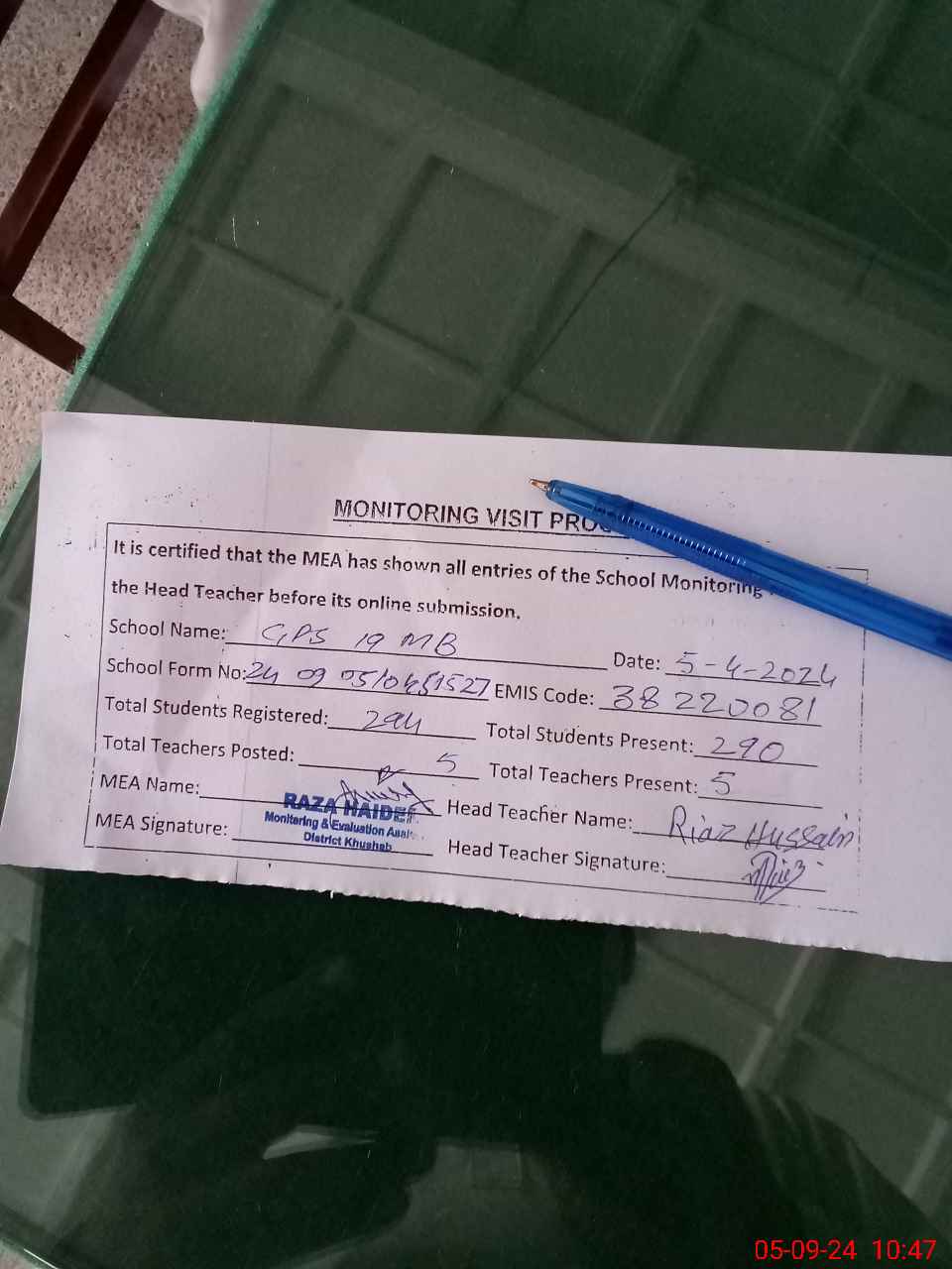 | EMIS Code: 38220081 | Name of School: GPS CHAK NO. 19 MB | |||