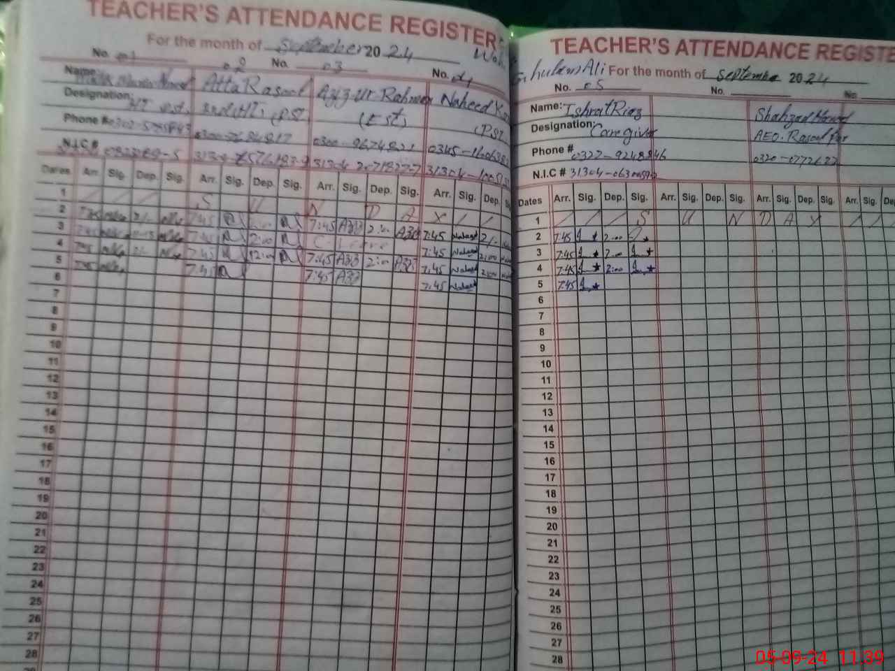 | CNIC | Full Name | Designation | R/C | Absence during last cal. month |