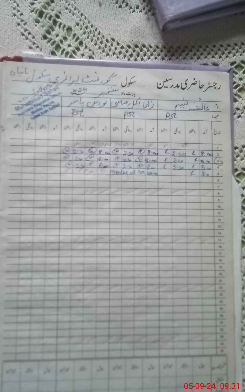 | Name: AY**** NA**** Designation: (School Headmaster's/Headmistress's) PST Phone/Cell Number: 03**** |