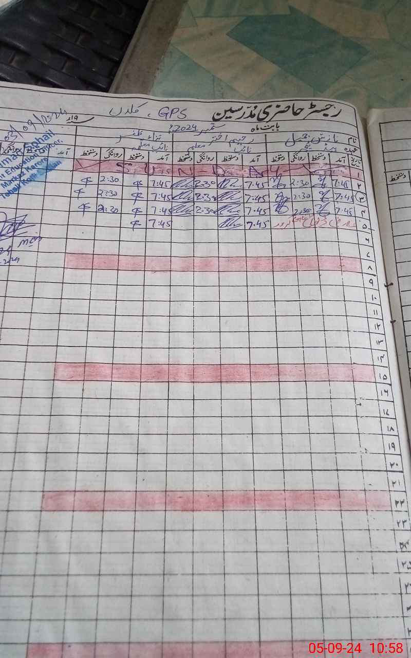 | CNIC | Full Name | Designation | R/C | Absence During Last Calender Month |
