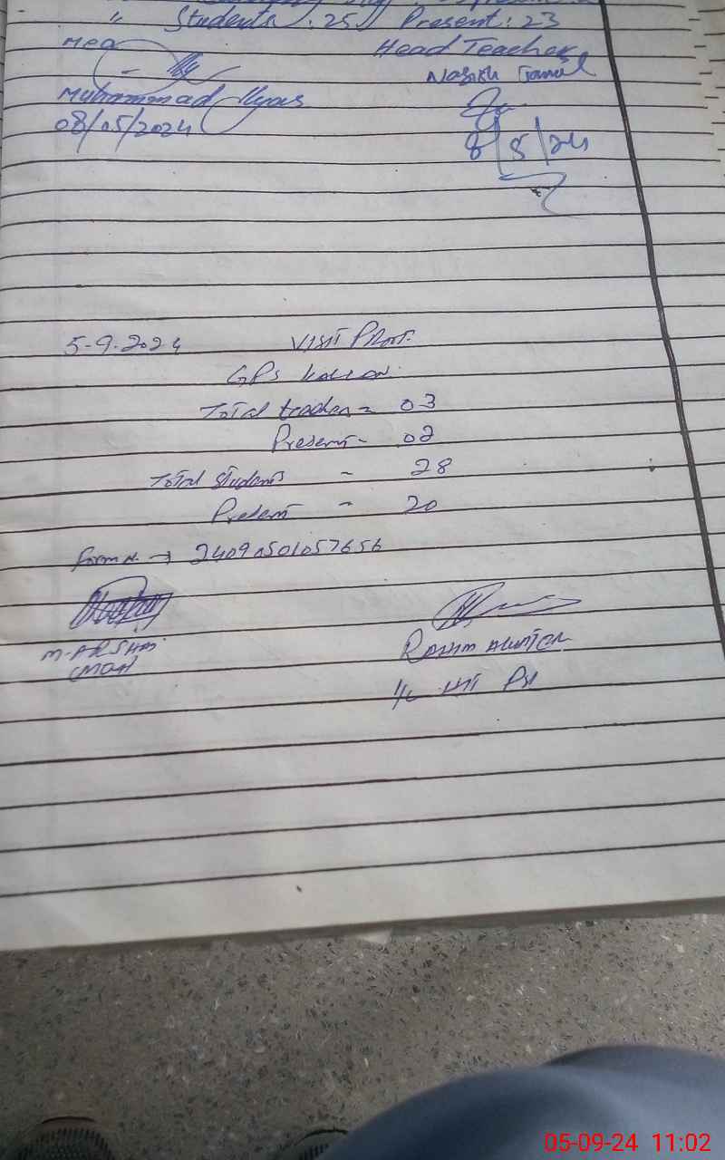 | Attendance Register | Head Teacher | MEA with School | Visit Proof |