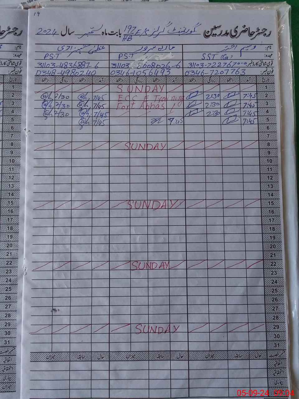 | Name: Wa**** Ak**** Designation: (School Headmaster's/Headmistress's) SST Phone/Cell Number: 03**** |