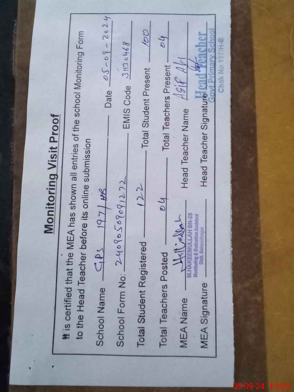 | EMIS Code: 31130468 | Name of School: GPS CHAK NO. 197 HB NO. 1 (A&T) | |||