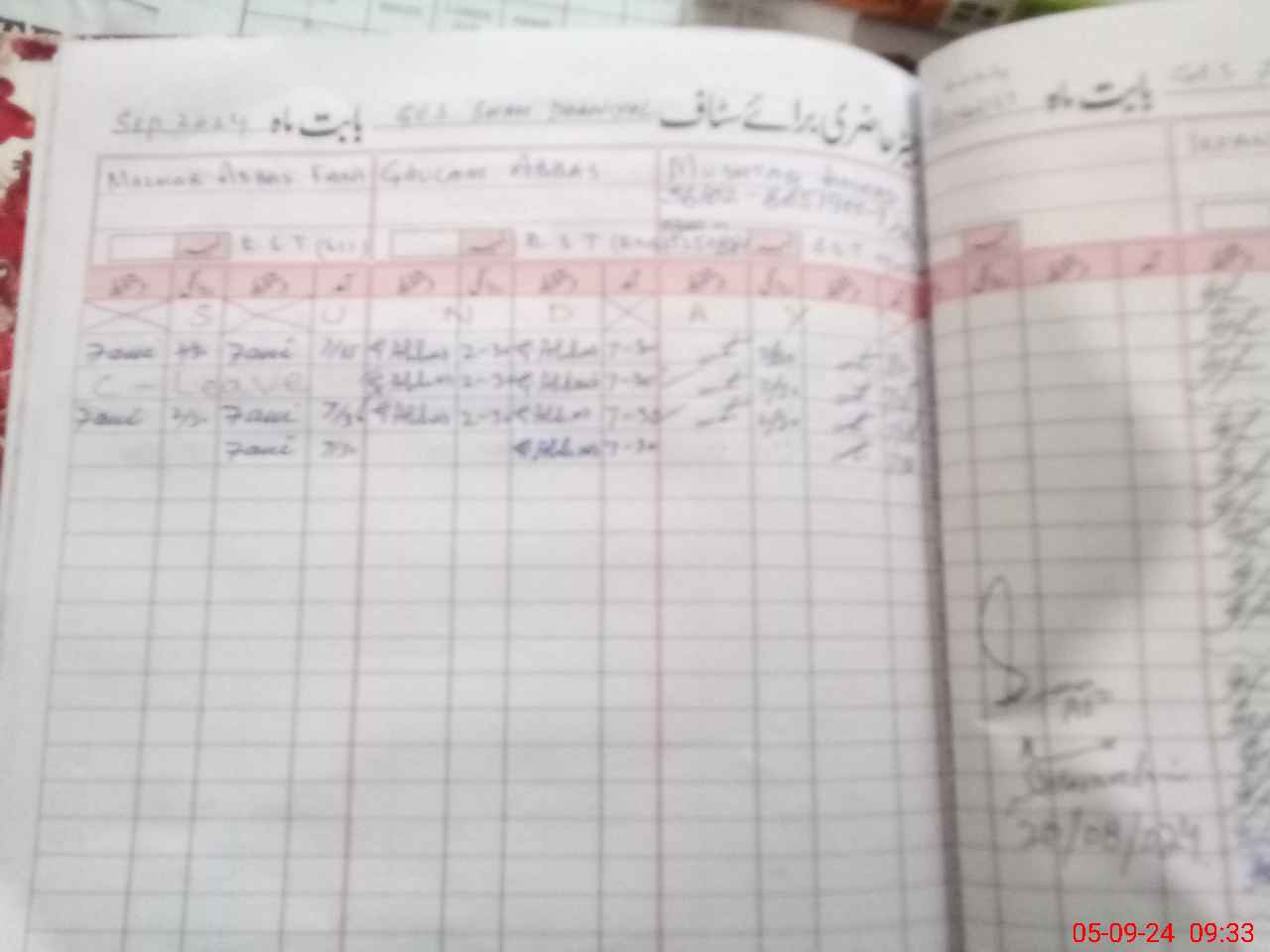 | Monitoring Date: 05-09-2024 | Start Time: 05-09-2024 08:57 AM | End Time: 05-09-2024 09:45 AM | Name of MEA: MU**** ZA**** IQ**** | |