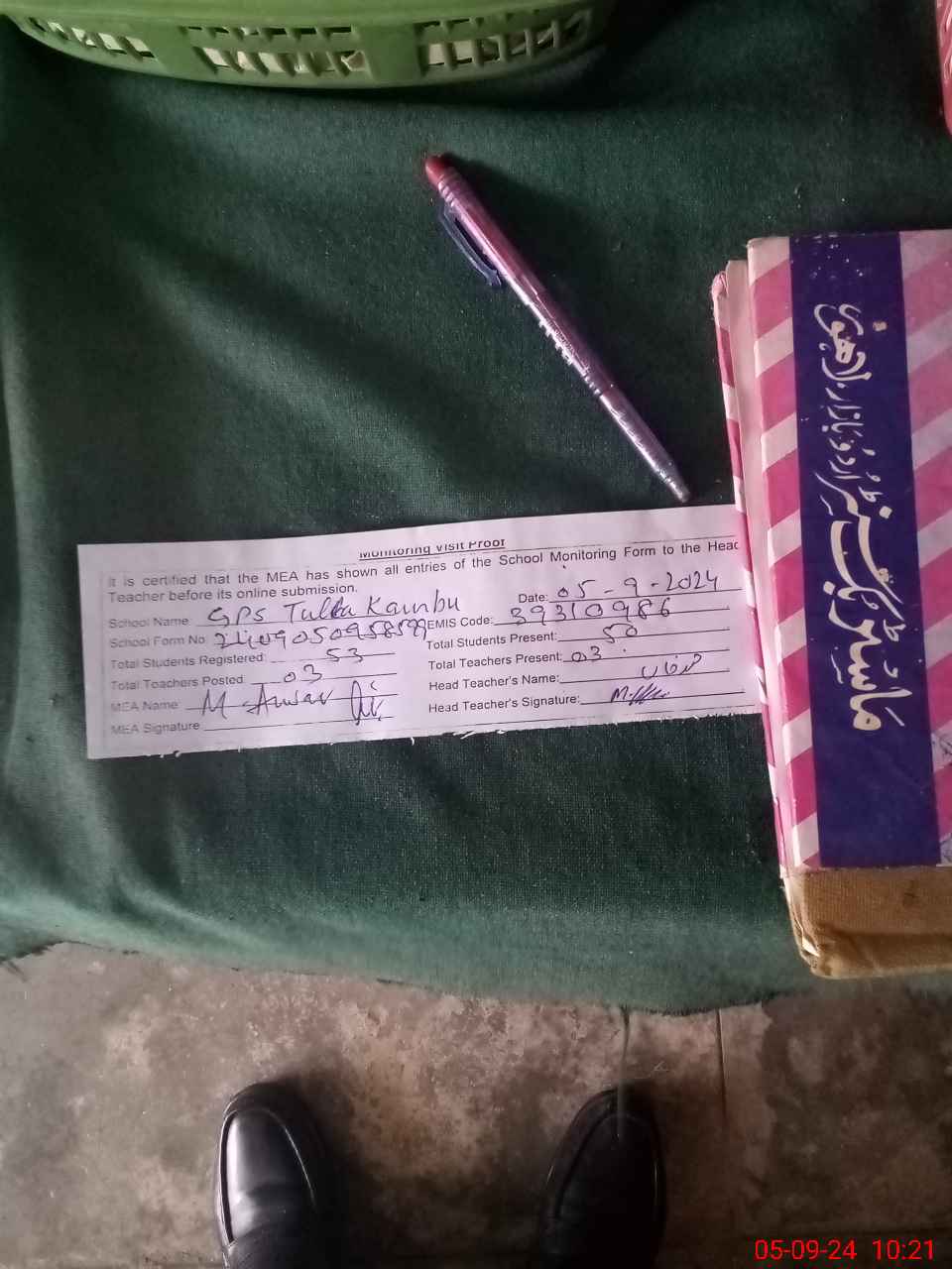 | Attendance Register | Head Teacher | MEA with School | Visit Proof |