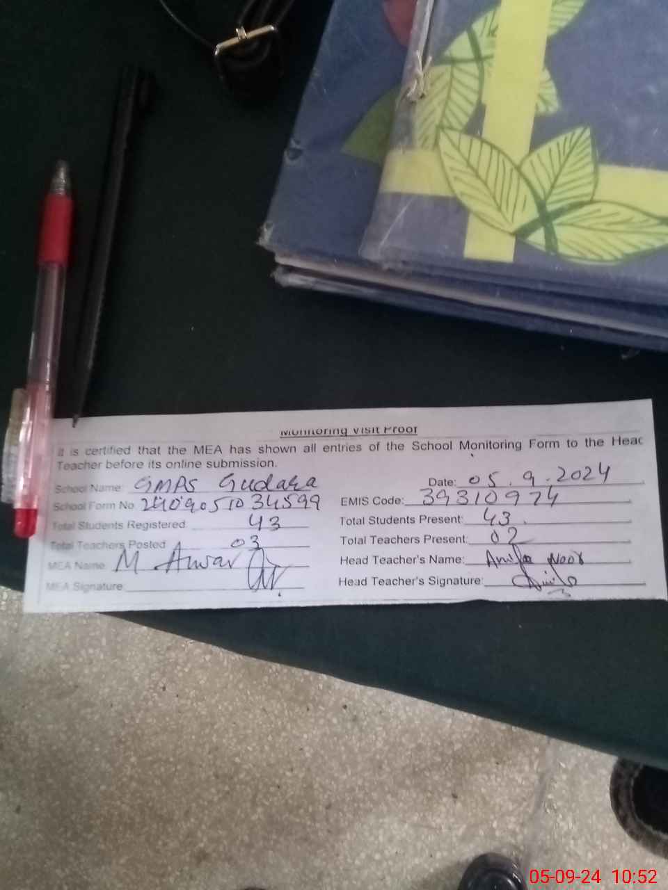 | EMIS Code: 39310974 | Name of School: GMPS GUDARA | |||