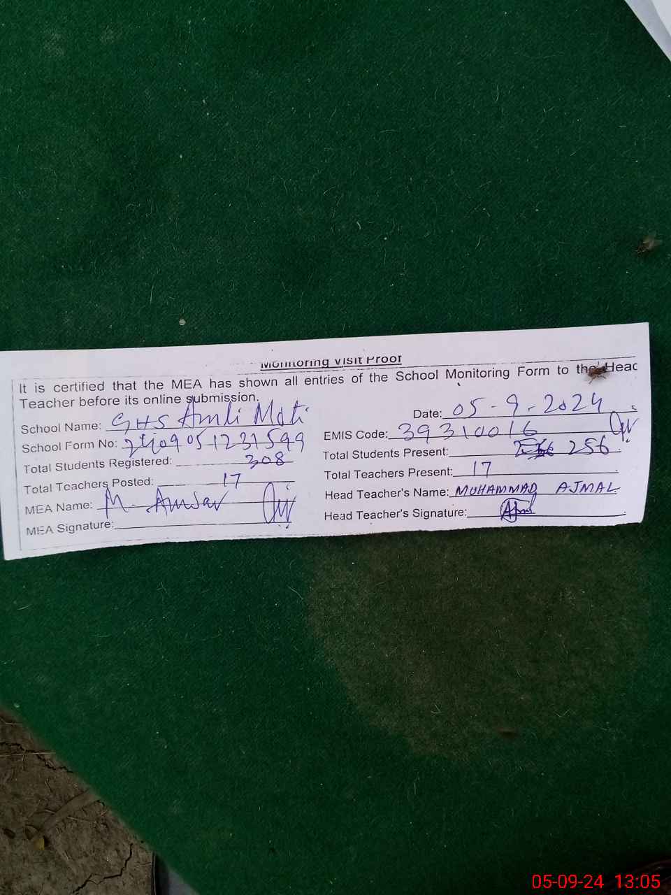 | EMIS Code: 39310016 | Name of School: GHS AMLI MOTI | |||