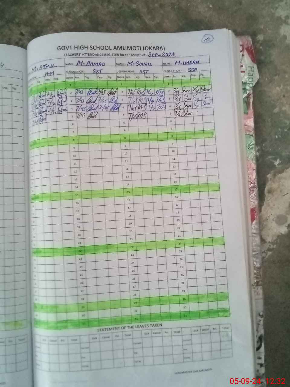 | CNIC | Full Name | Designation | R/C | Absence During Last Calender Month |
