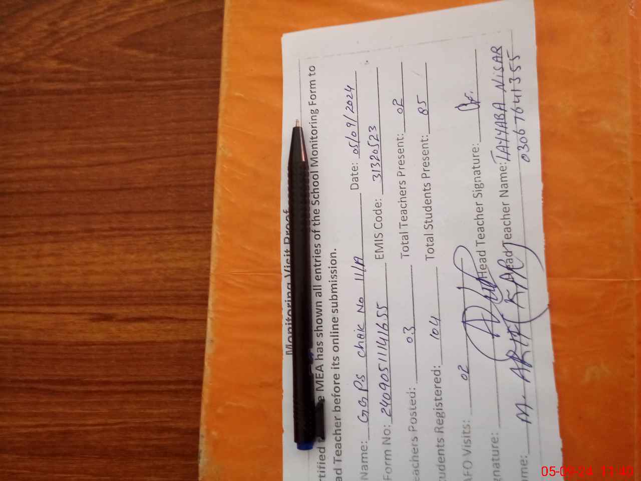 | EMIS Code: 31320523 | Name of School: GGPS CHAK NO.11/A | |||