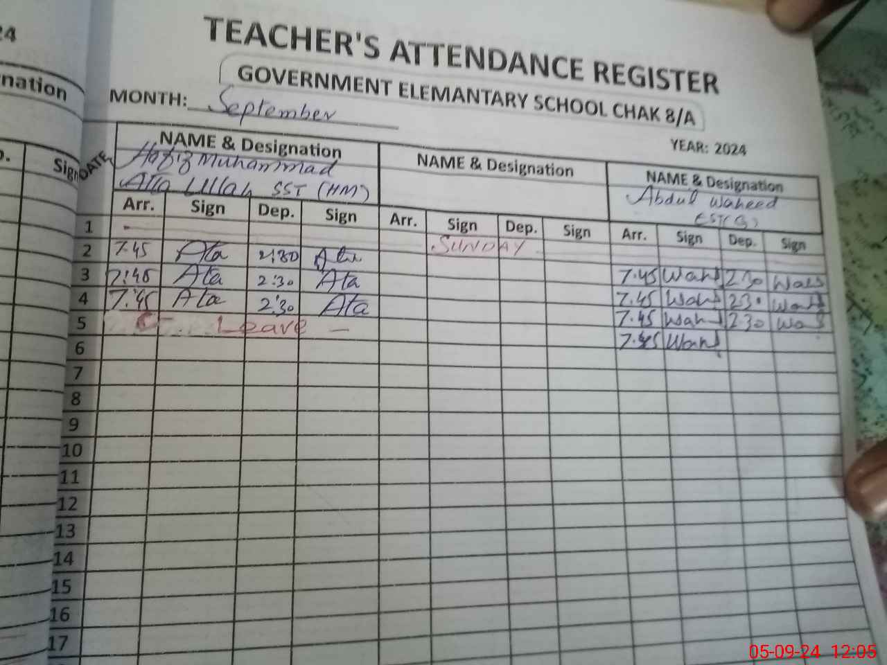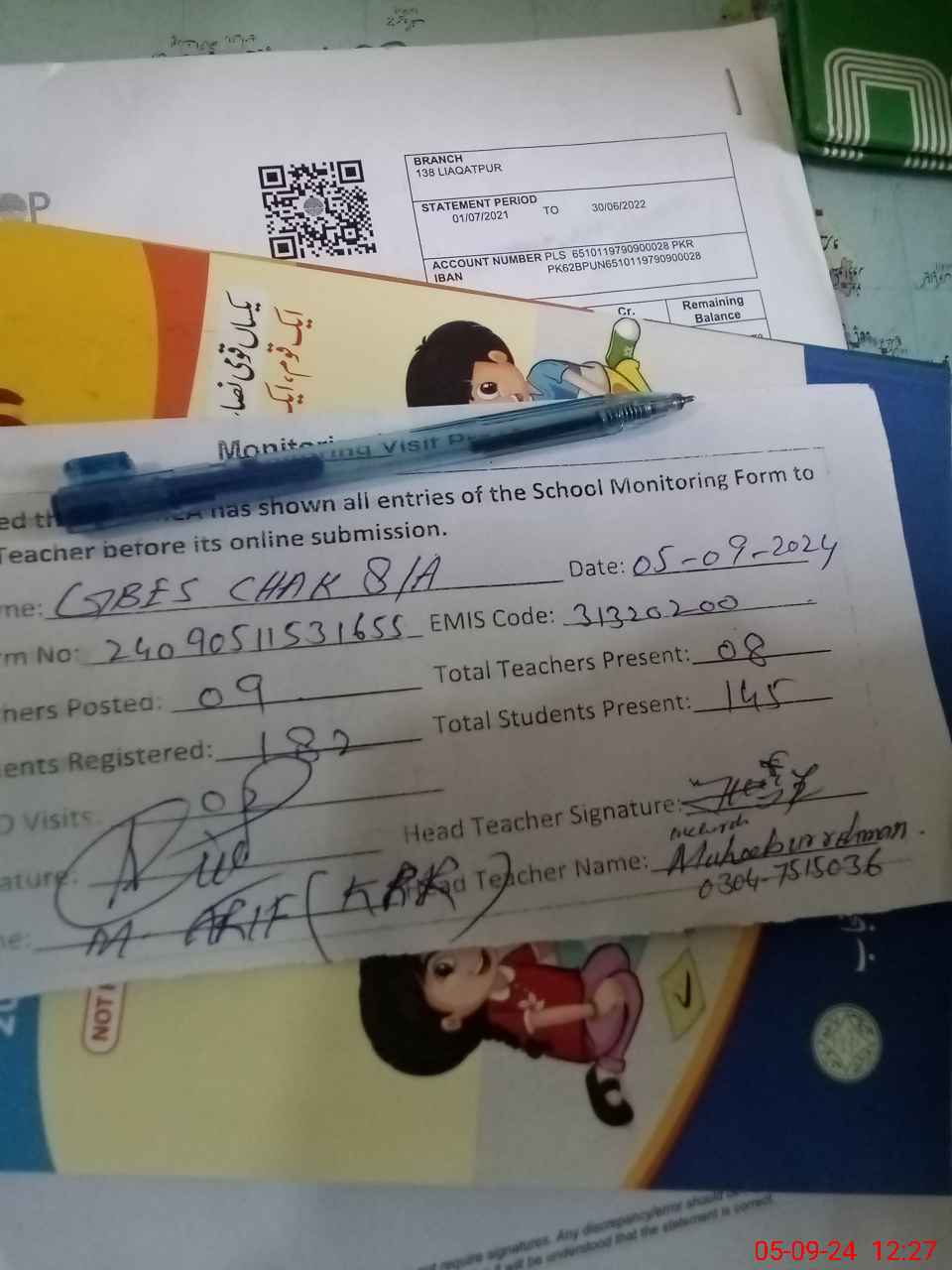| Name: HA**** M.A**** Designation: (School Headmaster's/Headmistress's) S.S.T Phone/Cell Number: 03**** |