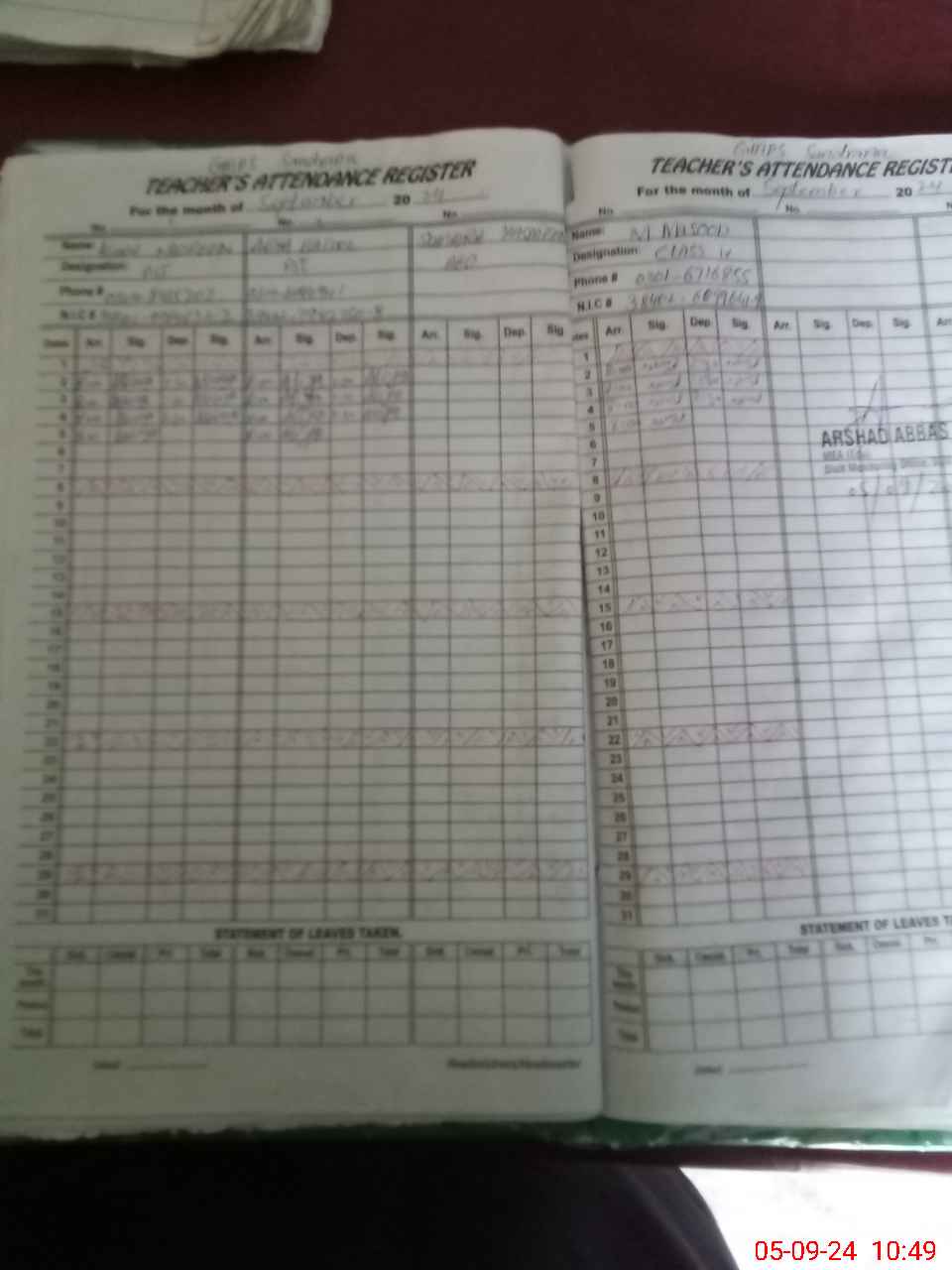 | Name: AS**** NO**** Designation: (School Headmaster's/Headmistress's) ESE (SCI _ MATH) Phone/Cell Number: 03**** |