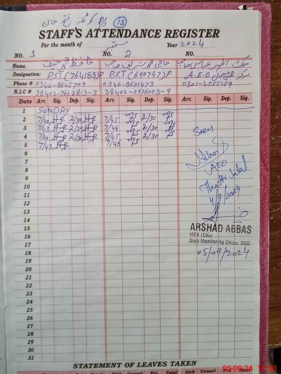 | Name: HA**** MU**** HA**** Designation: (School Headmaster's/Headmistress's) PST Phone/Cell Number: 03**** |