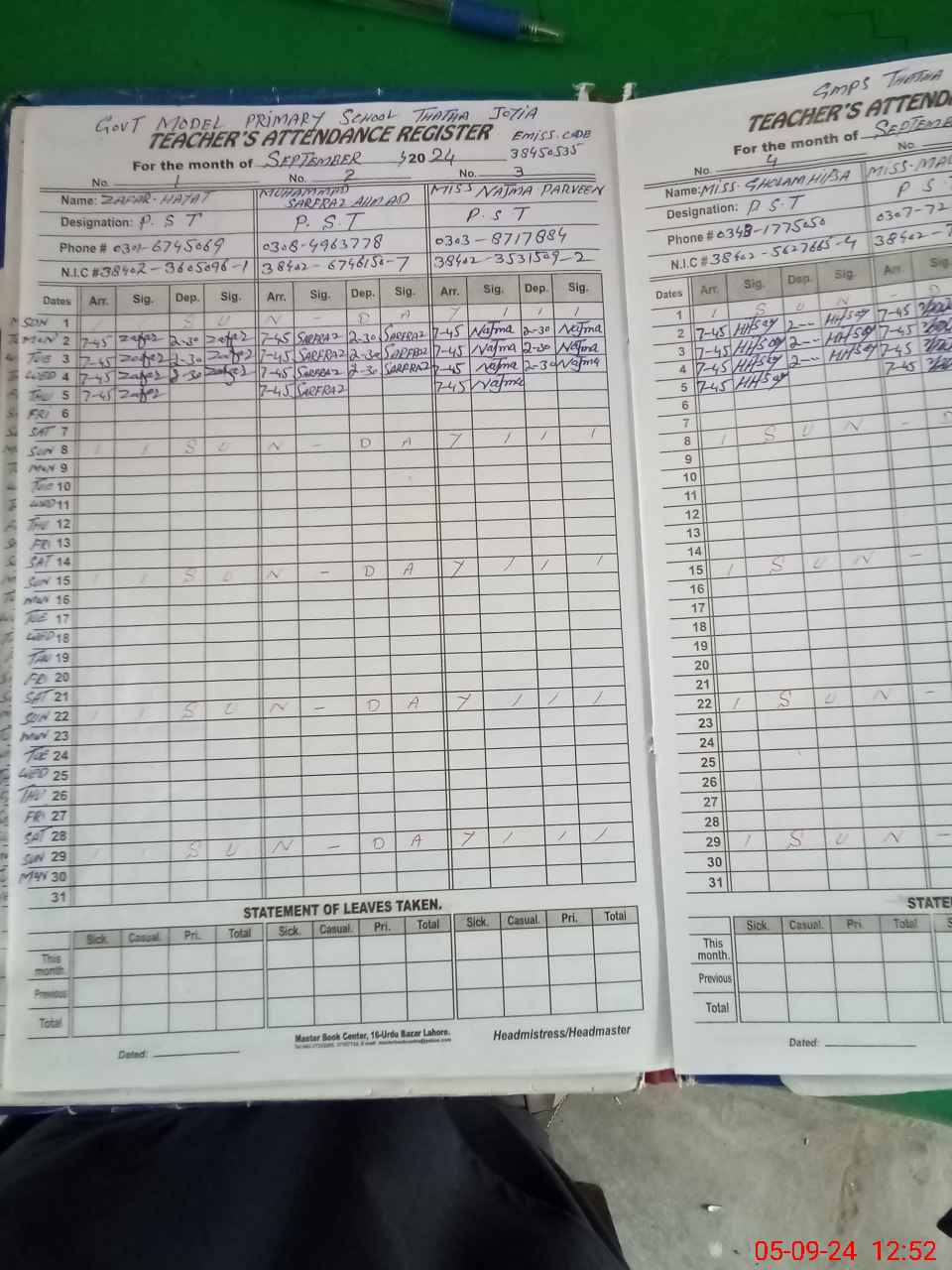 | Name: Mu**** Sa**** Designation: (School Headmaster's/Headmistress's) PTC/JV Phone/Cell Number: 03**** |