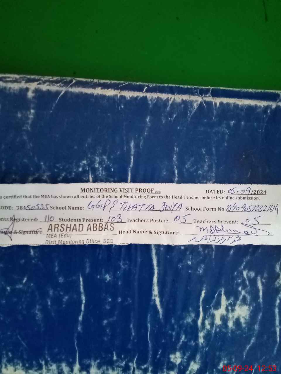 | EMIS Code: 38450535 | Name of School: GGPS THATTA JOIYA | |||
