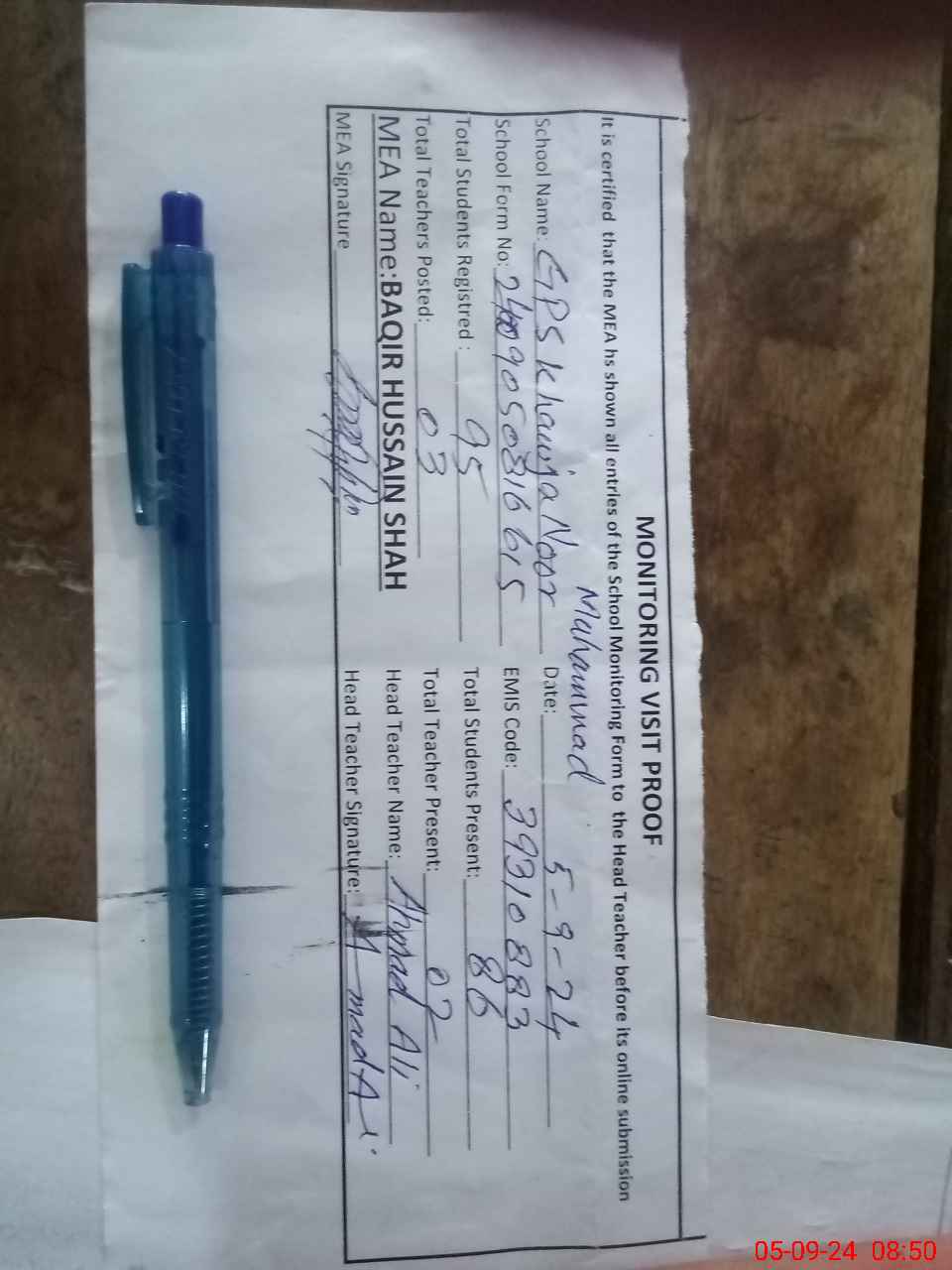 | EMIS Code: 39310883 | Name of School: GPS KHAWAJA NOOR MUHAMMAD | |||