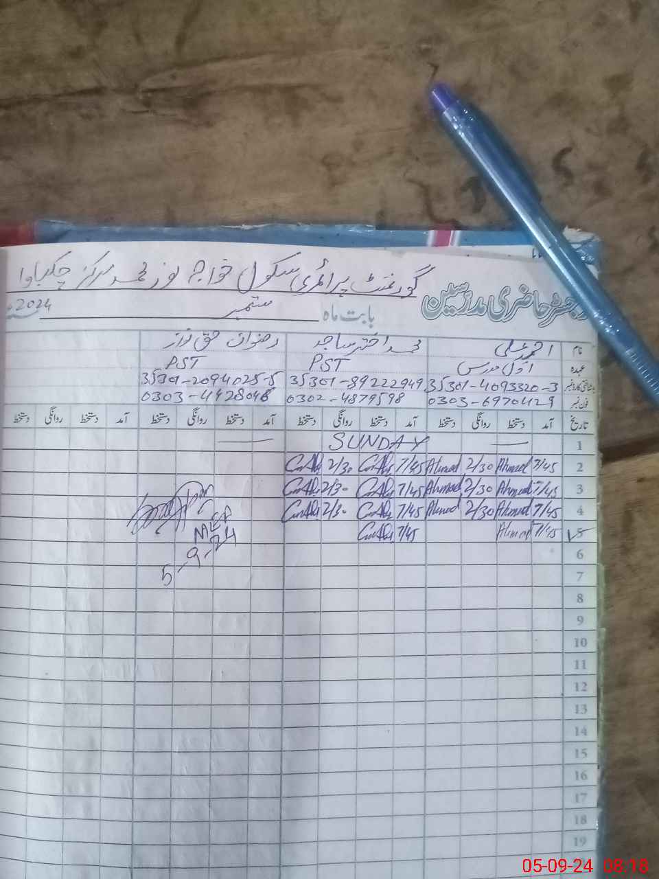 | Name: AH**** AL**** Designation: (School Headmaster's/Headmistress's) PST Phone/Cell Number: 03**** |