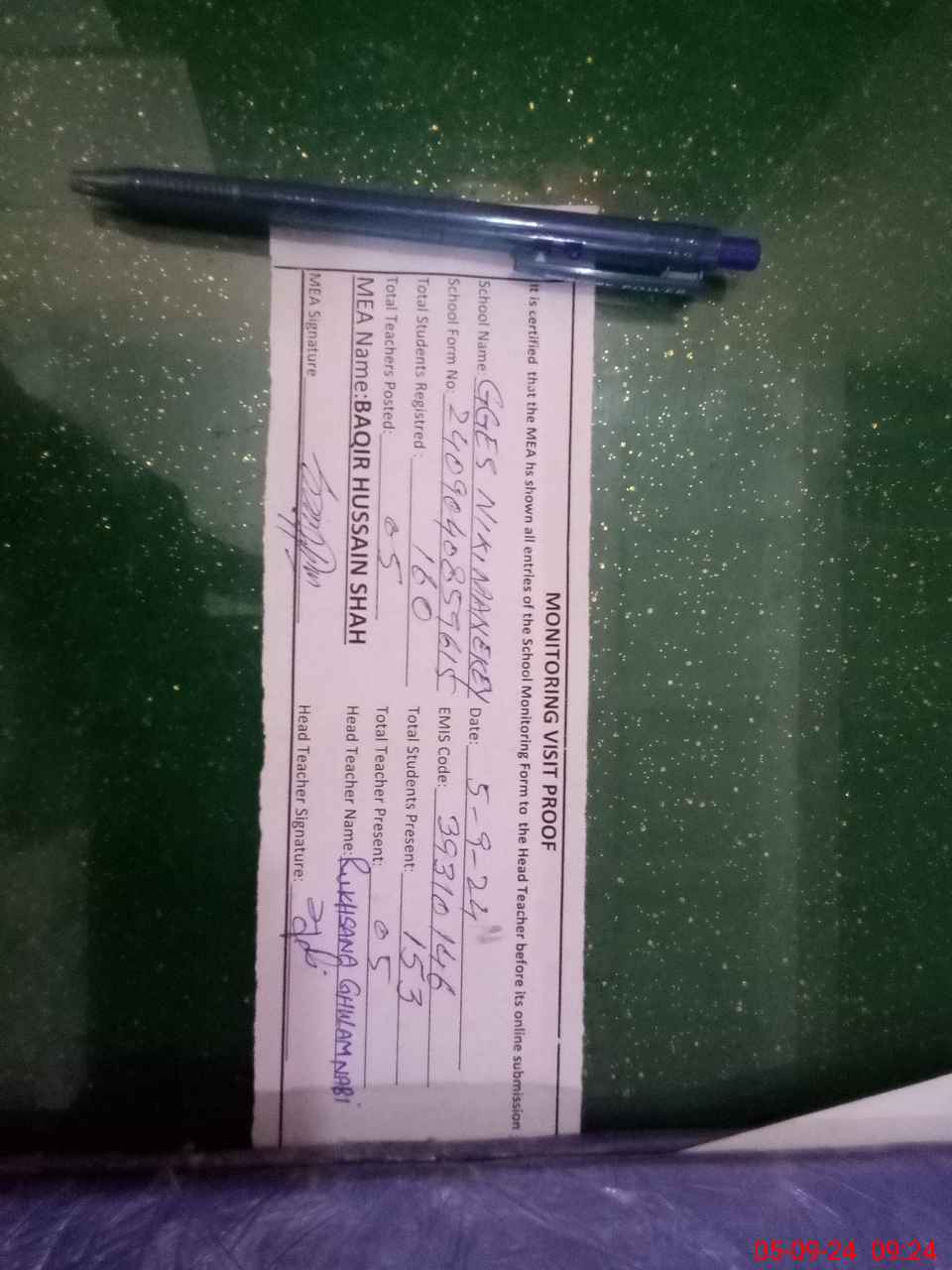 | Monitoring Date: 05-09-2024 | Start Time: 05-09-2024 08:59 AM | End Time: 05-09-2024 09:25 AM | Name of MEA: BA**** HU**** SH**** | |