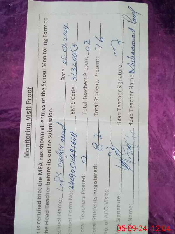 | EMIS Code: 31320053 | Name of School: GPS NASIR ABAD BASTI KHATRAN | |||