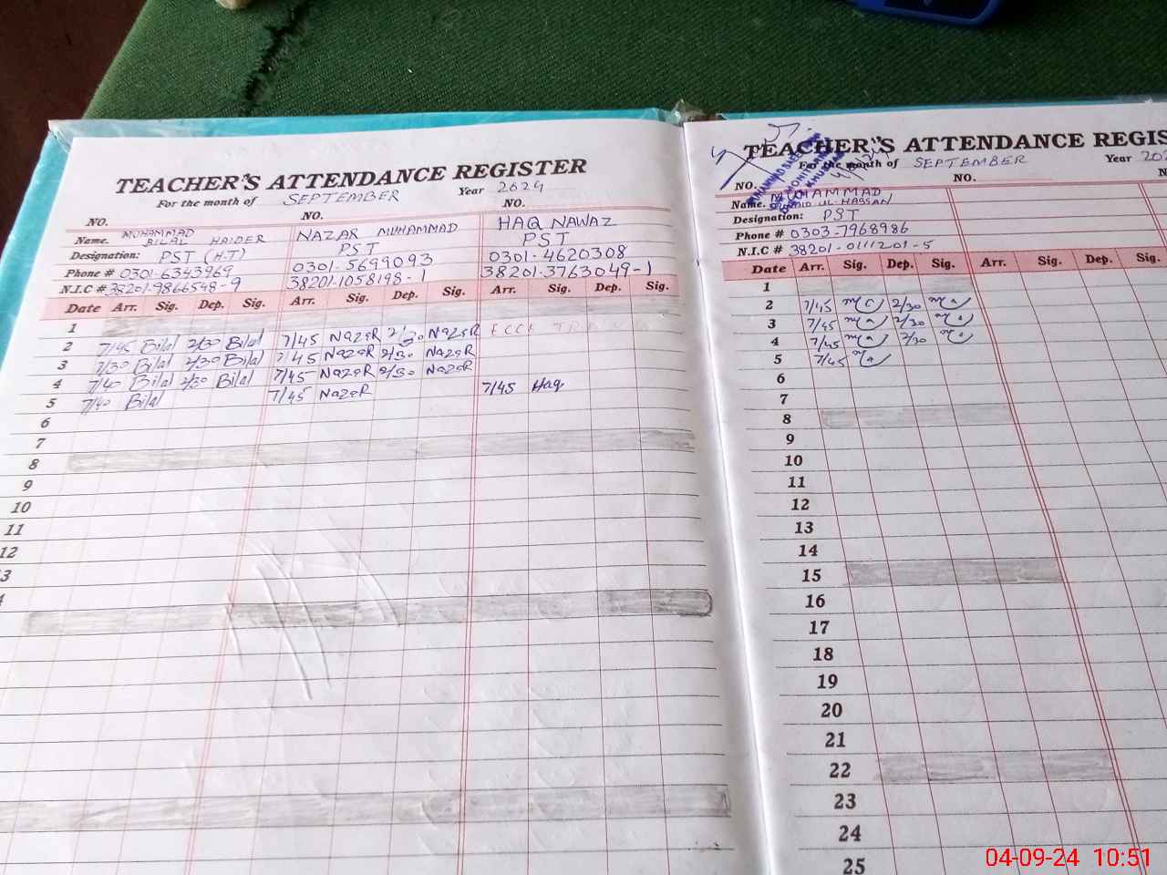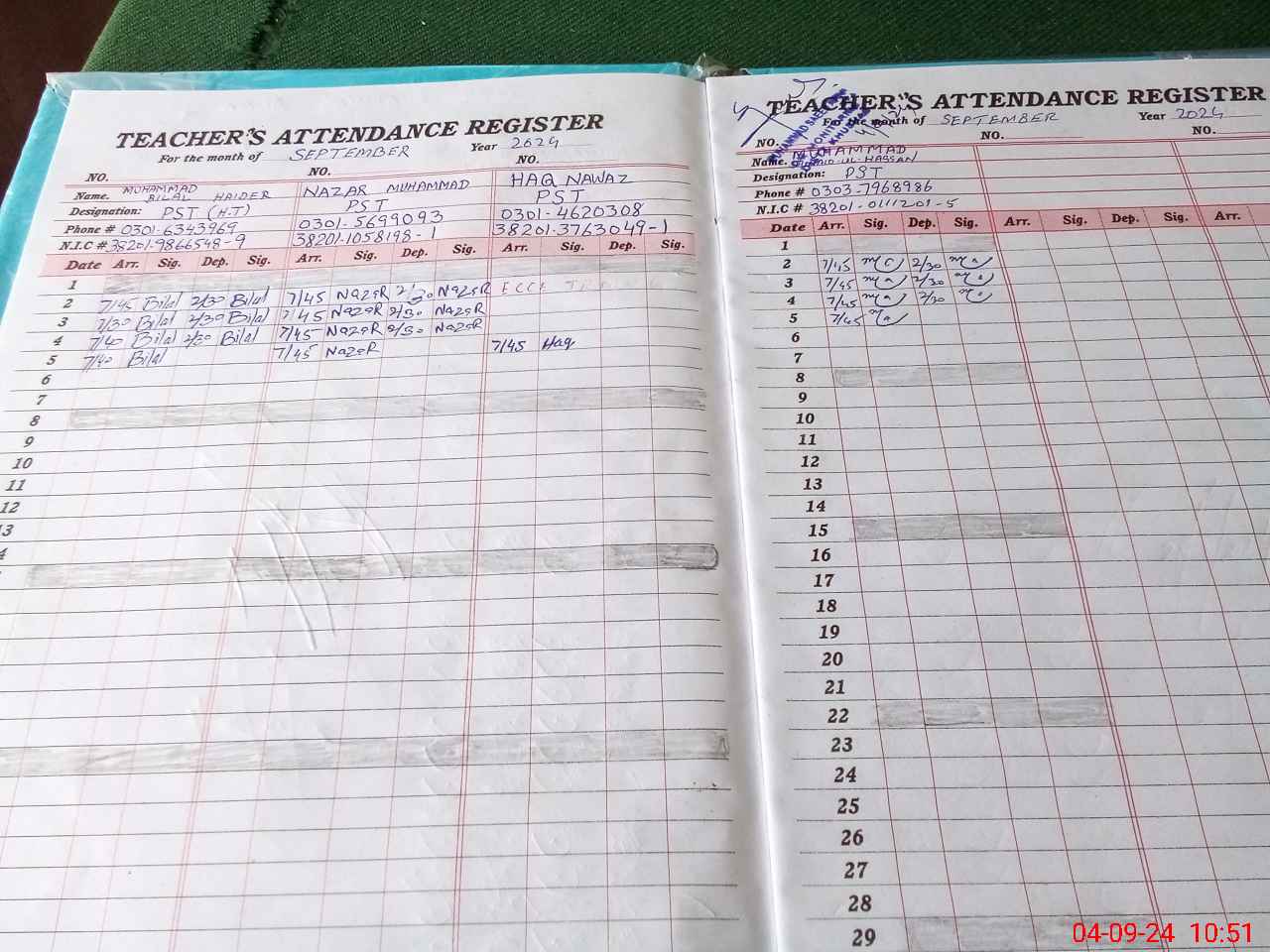 | Name: Mu**** Bi**** Designation: (School Headmaster's/Headmistress's) PST Phone/Cell Number: 03**** |
