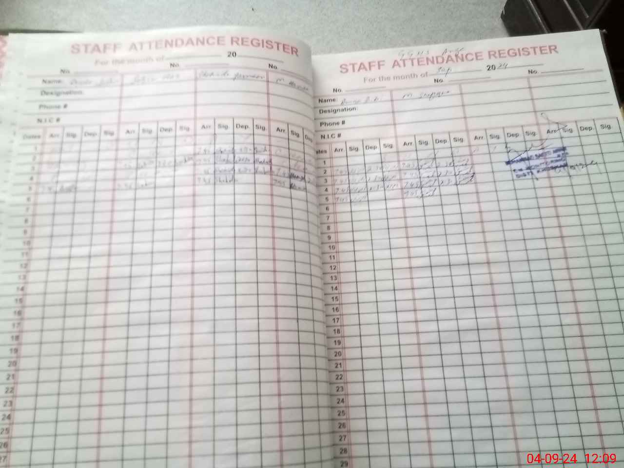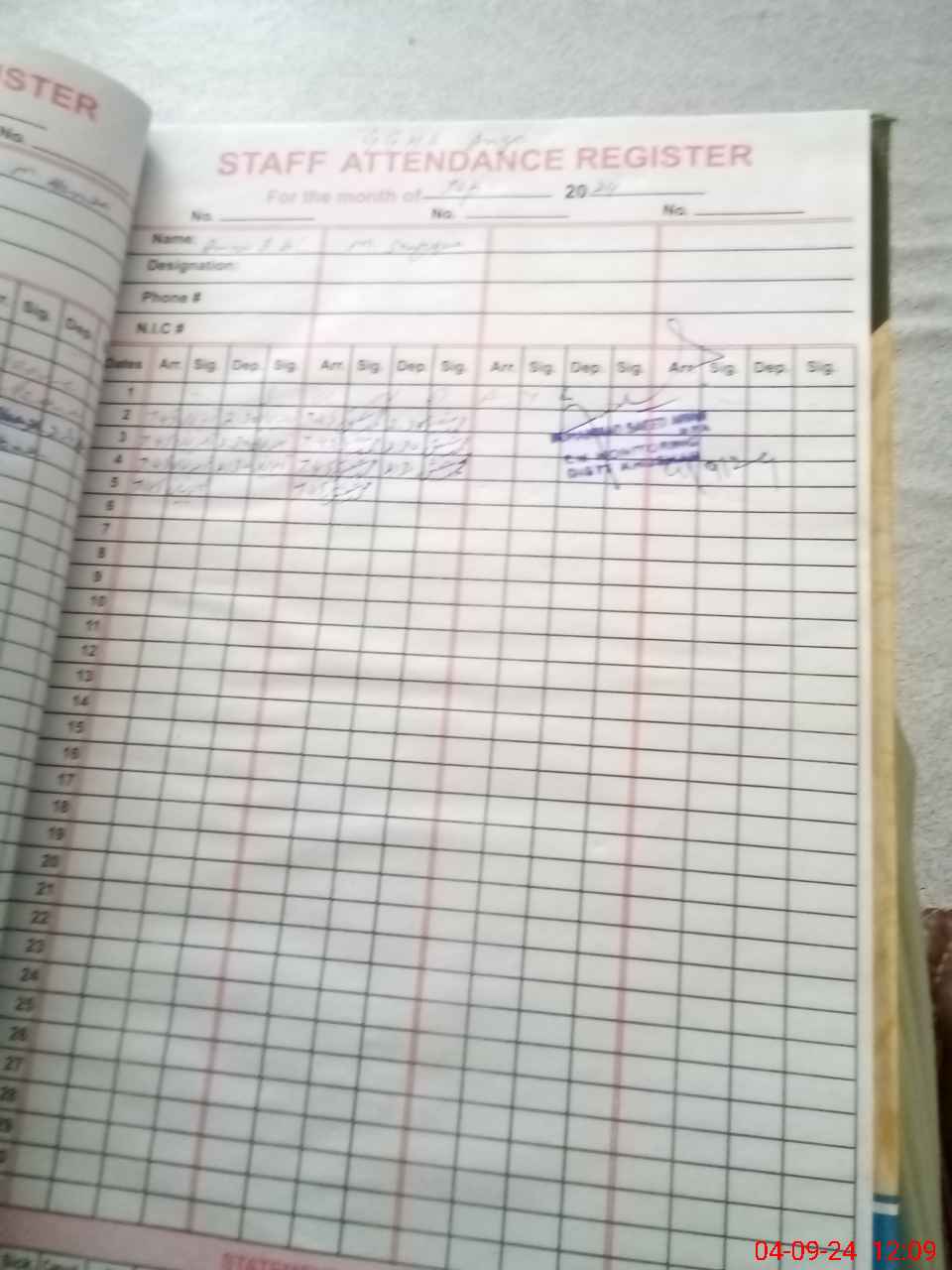| CNIC | Full Name | Designation | R/C | Absence During Last Calender Month |