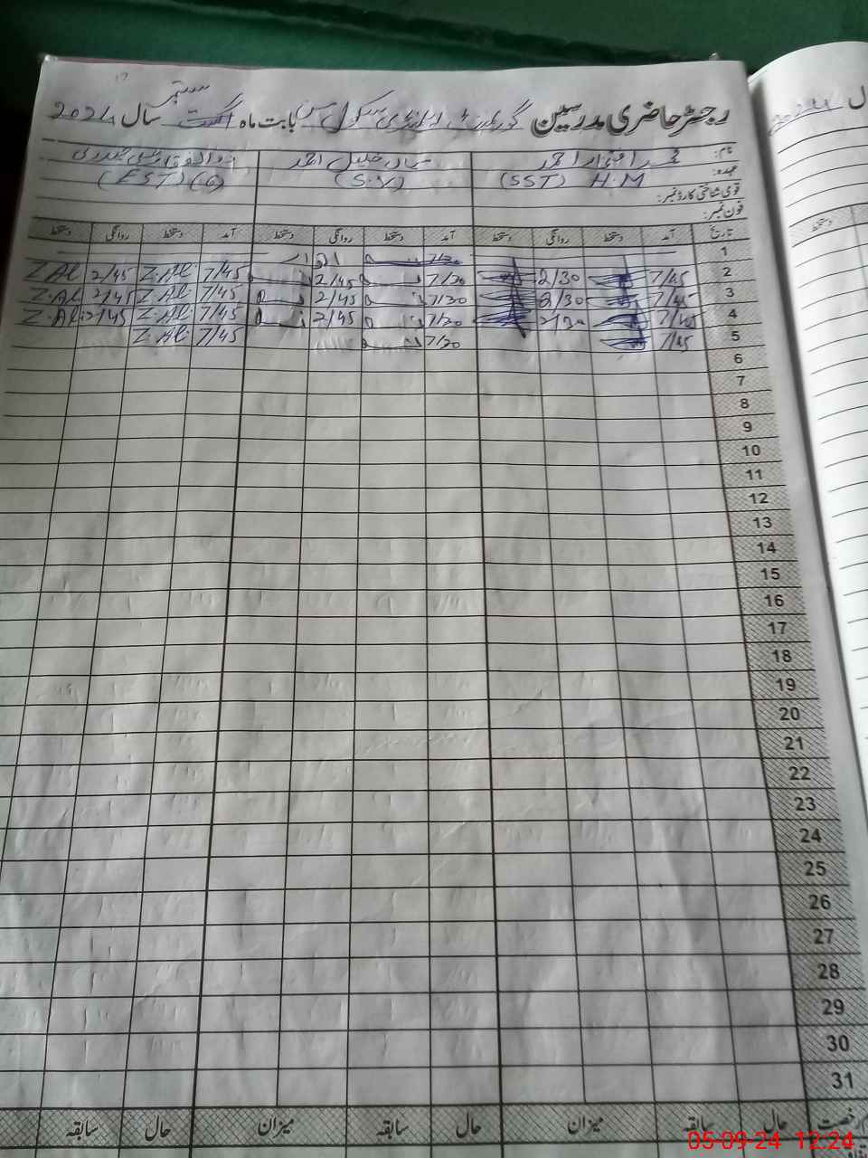| CNIC | Full Name | Designation | R/C | Absence During Last Calender Month |