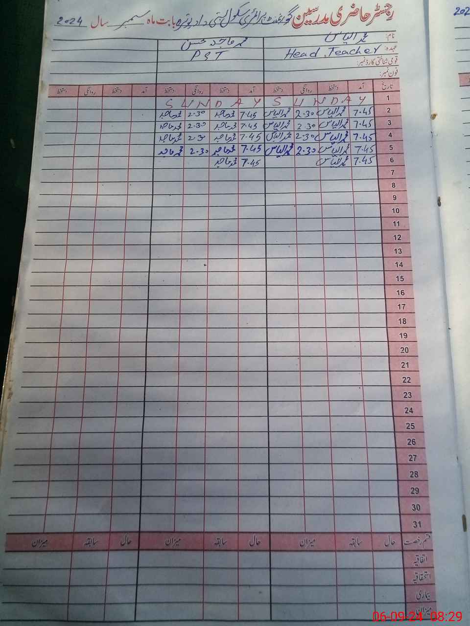 | Name: MU**** IL**** Designation: (School Headmaster's/Headmistress's) PST Phone/Cell Number: 03**** |