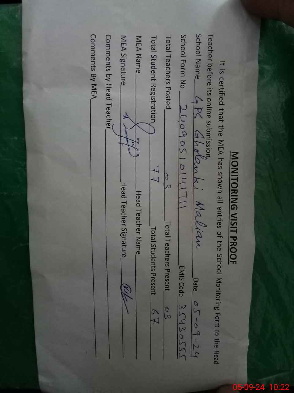 | EMIS Code: 35430555 | Name of School: GPS GHOLAN KE MALIAN | |||