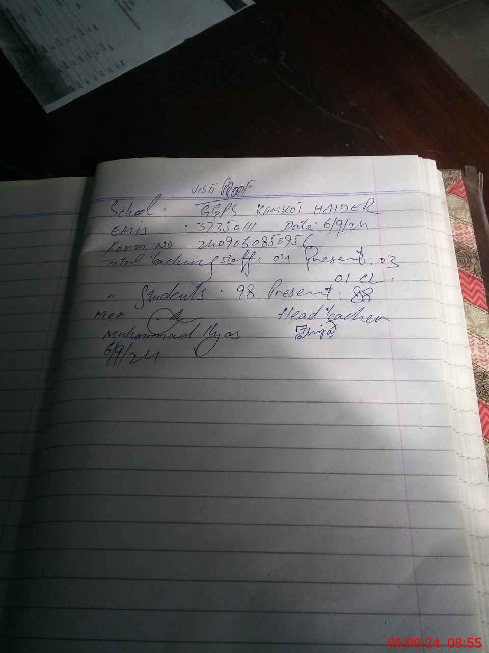 | EMIS Code: 37350111 | Name of School: GGPS KAMKOT HAIDER | |||