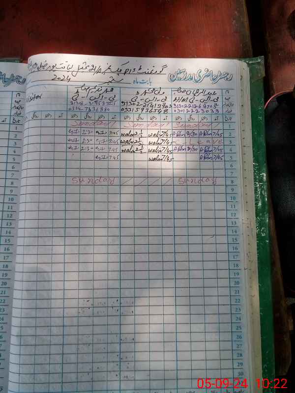 | CNIC | Full Name | Designation | R/C | Absence During Last Calender Month |