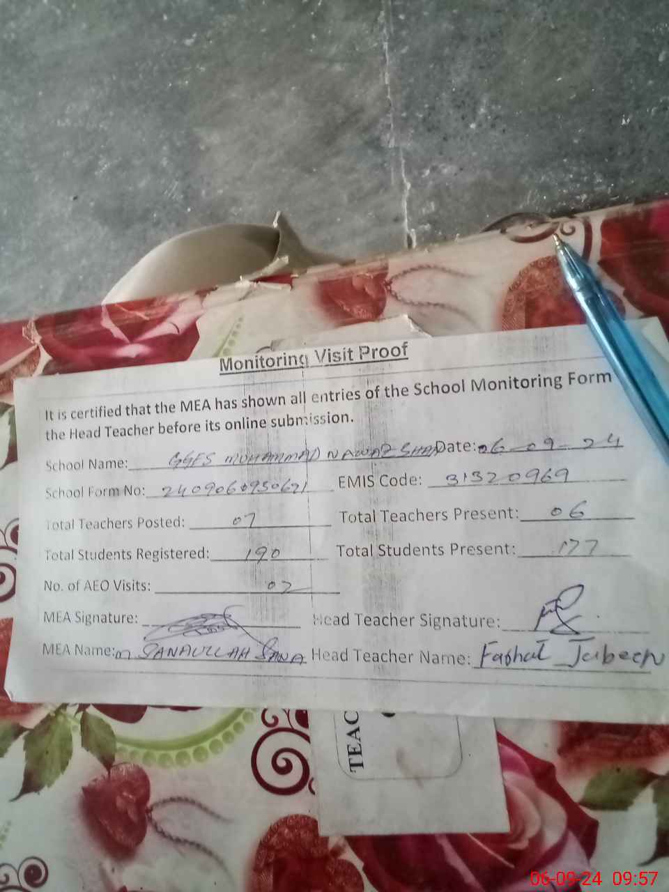 | EMIS Code: 31320969 | Name of School: GGES MUHAMMAD NAWAZ SHAH | |||