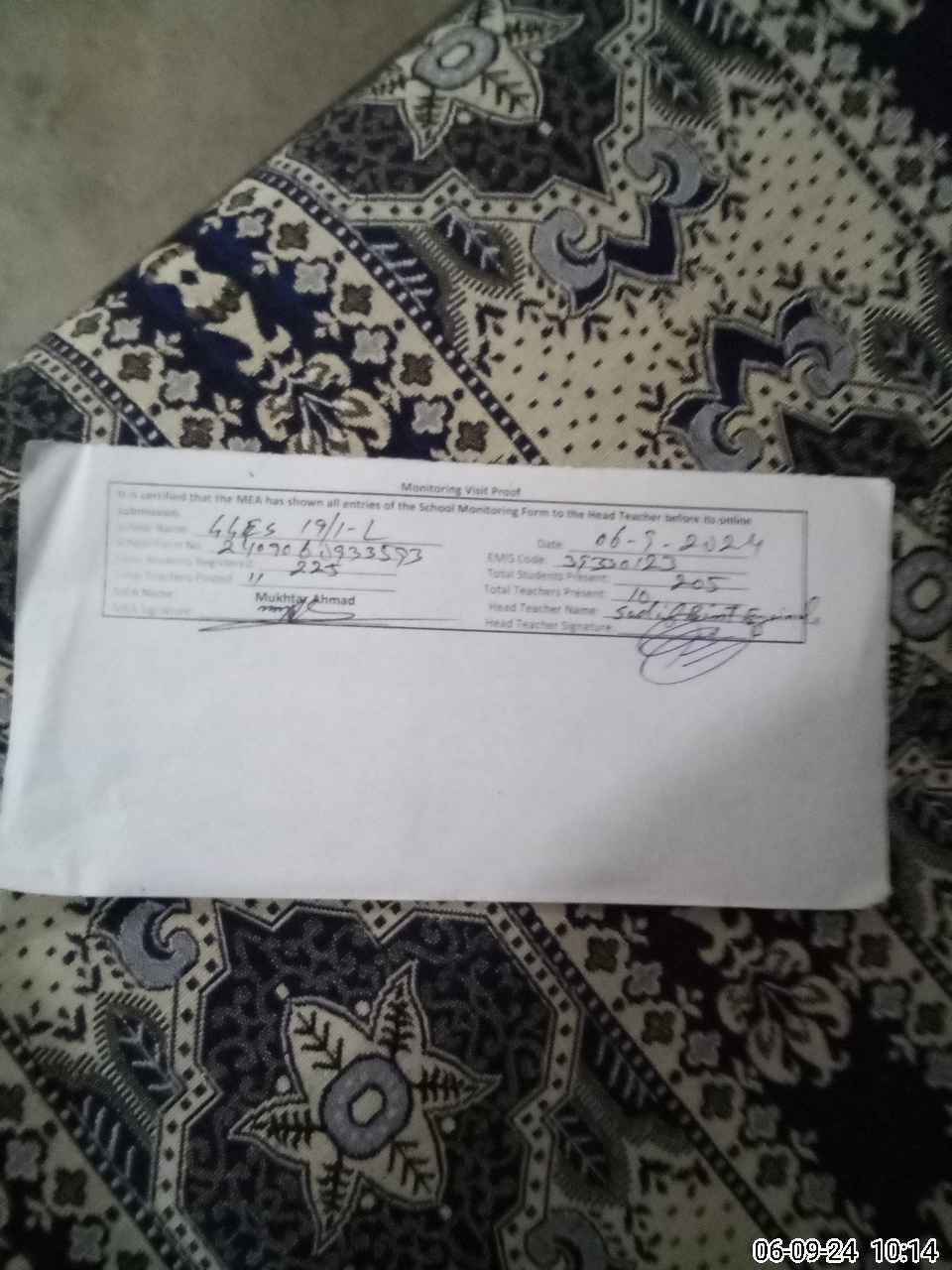 | EMIS Code: 39330123 | Name of School: GGES CHAK NO. 19/1-L | |||
