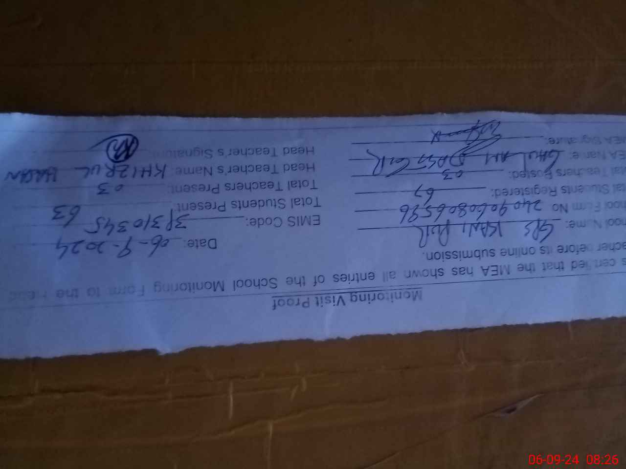 | Attendance Register | Head Teacher | MEA with School | Visit Proof |