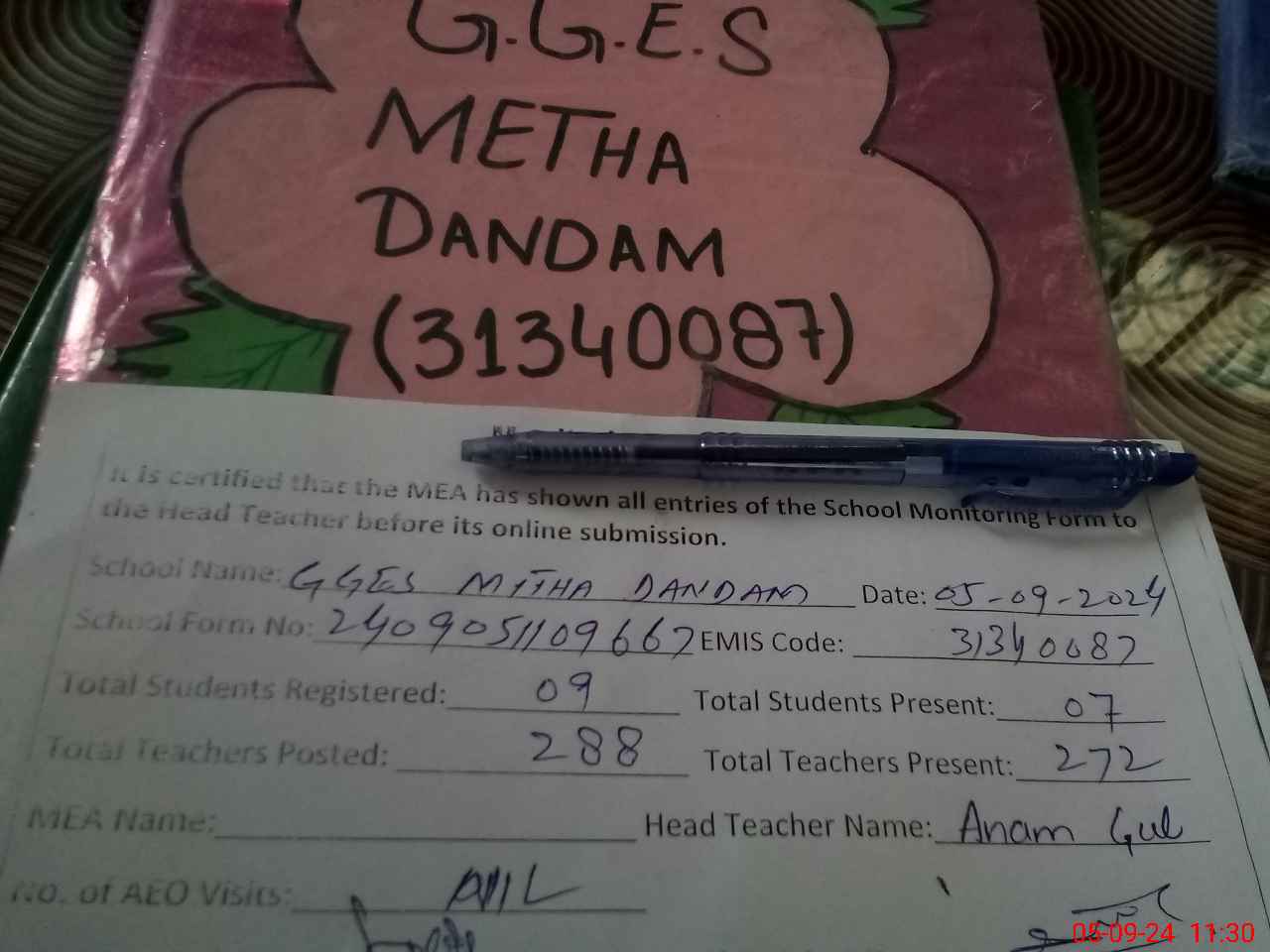 | EMIS Code: 31340087 | Name of School: GGES METHA DANDAM | |||