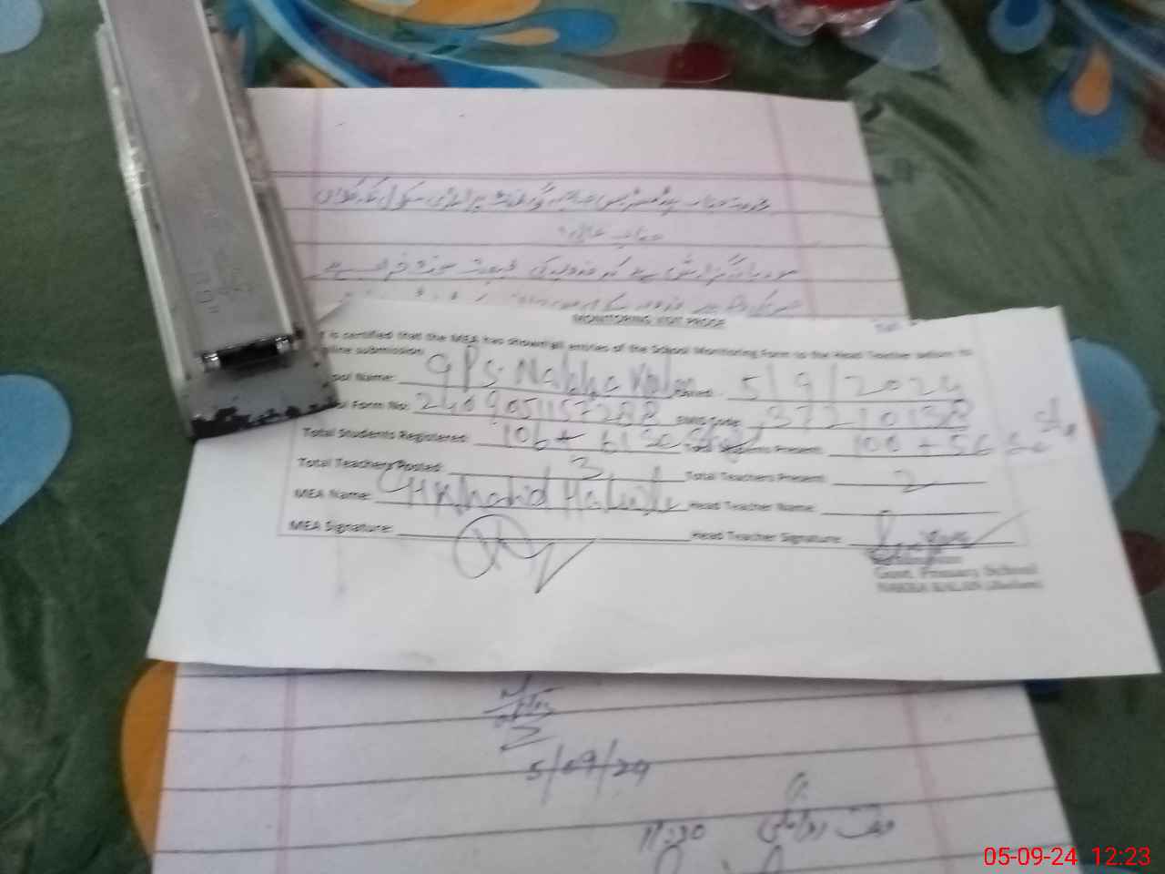 | Attendance Register | Head Teacher | MEA with School | Visit Proof |