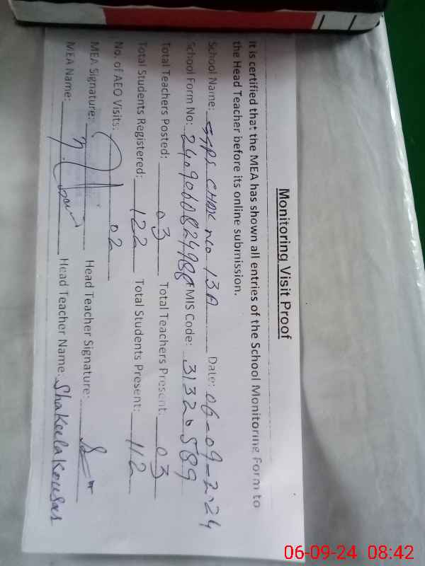 | Attendance Register | Head Teacher | MEA with School | Visit Proof |