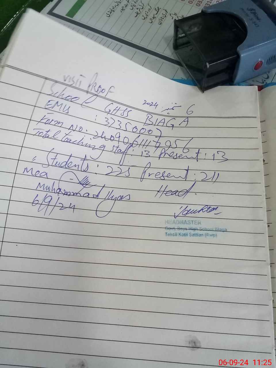 | Certified that this School was Inspected by the Undersigned MEA/DMO Today and the Information Stated Above is as Per Record. | |||||