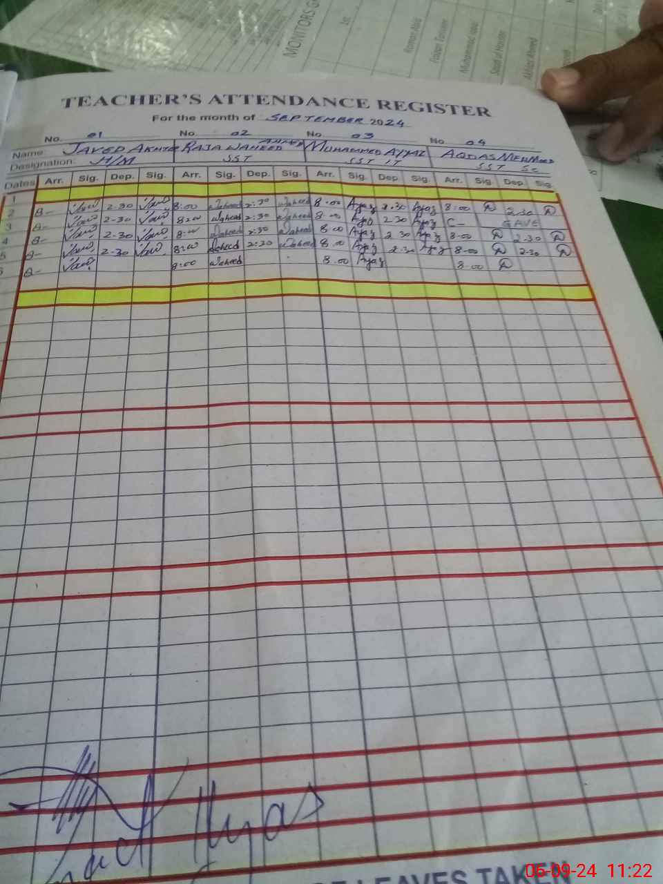 | CNIC | Full Name | Designation | R/C | Absence during last cal. month |