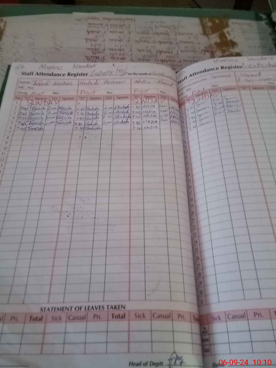 | CNIC | Full Name | Designation | R/C | Absence During Last Calender Month |
