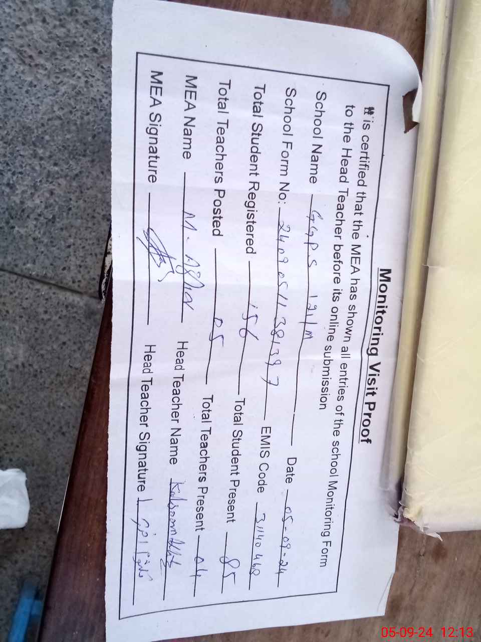 | EMIS Code: 31140468 | Name of School: GGPS CHAK NO 121/6-R | |||