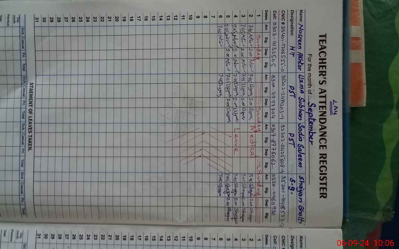 | Name: NA**** AK**** Designation: (School Headmaster's/Headmistress's) PST Phone/Cell Number: 03**** |