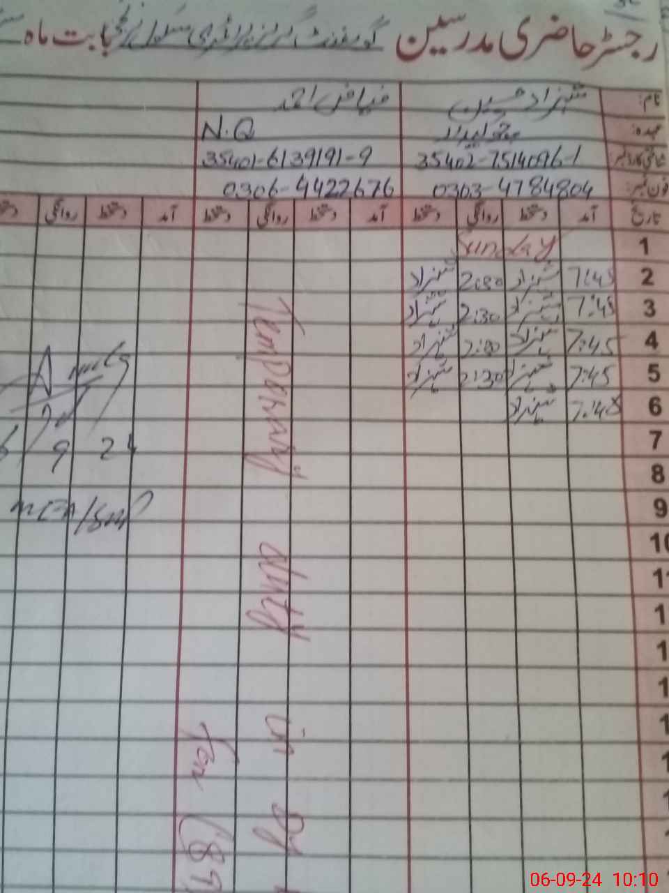 | Name: Za**** Ra**** Designation: (School Headmaster's/Headmistress's) ESE Phone/Cell Number: 03**** |