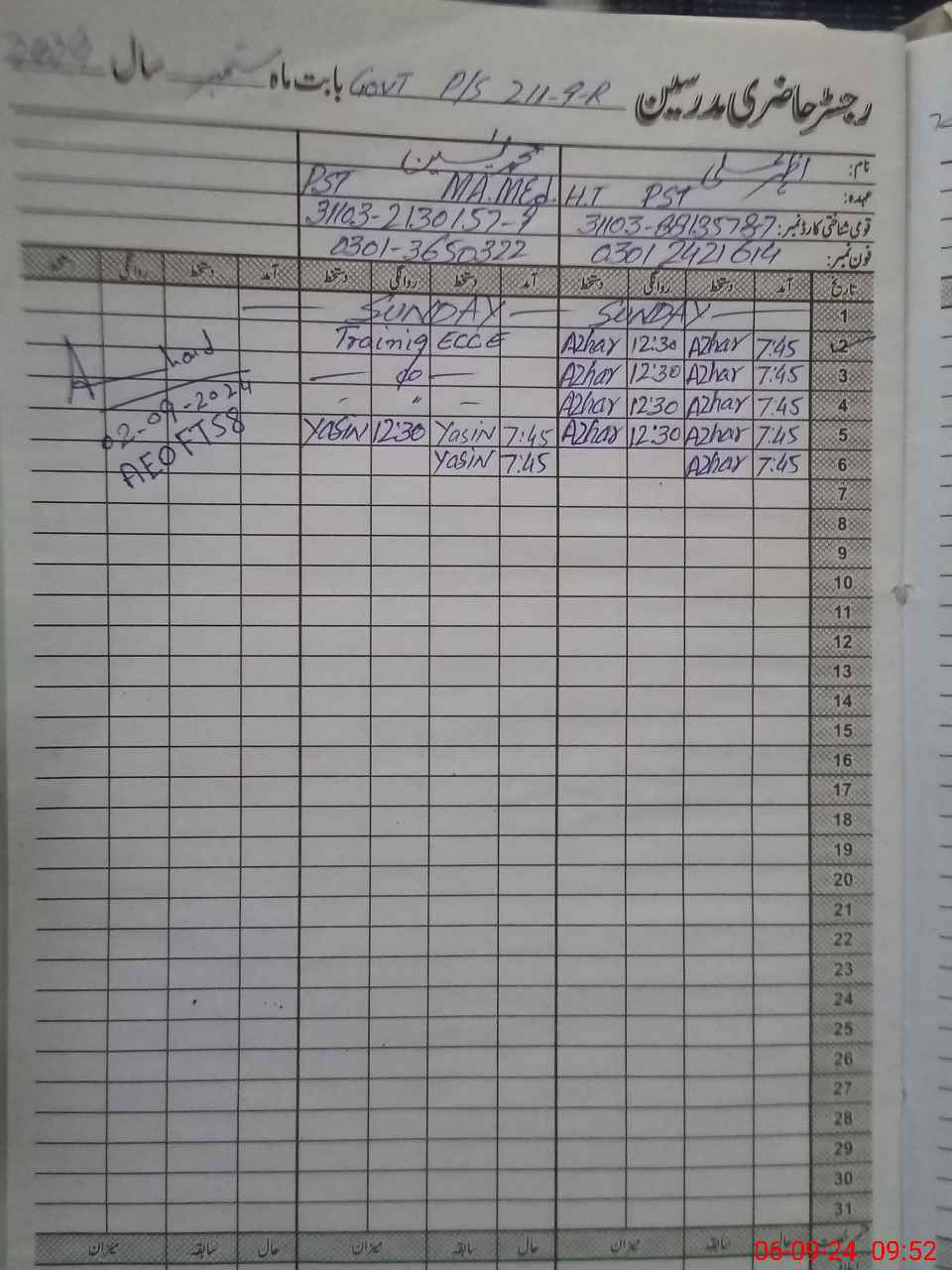 | Name: Mu**** Ya**** Designation: (School Headmaster's/Headmistress's) PST Phone/Cell Number: 03**** |