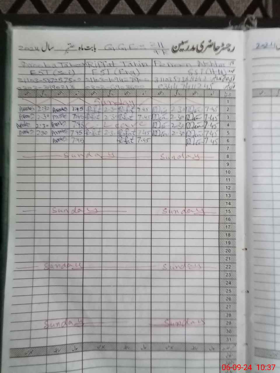 | 36**** | Ha**** Mu**** | 2 | 24 | 0 | 0 | 24 | 0 | 0 | 0 | 0 | 0 | Absent (Un-Authorized) | |