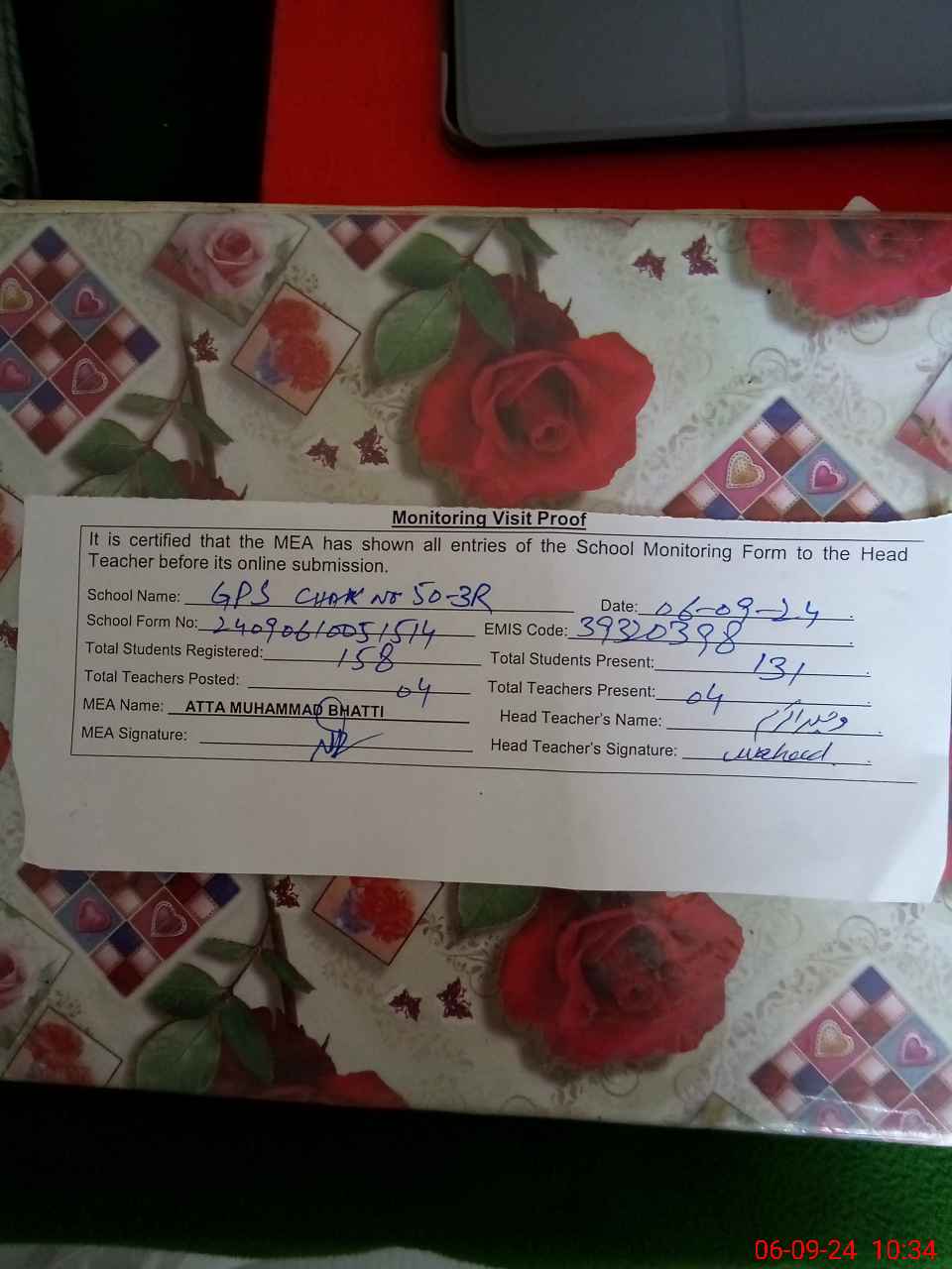 | EMIS Code: 39320398 | Name of School: GPS CHAK NO. 50/3-R | |||