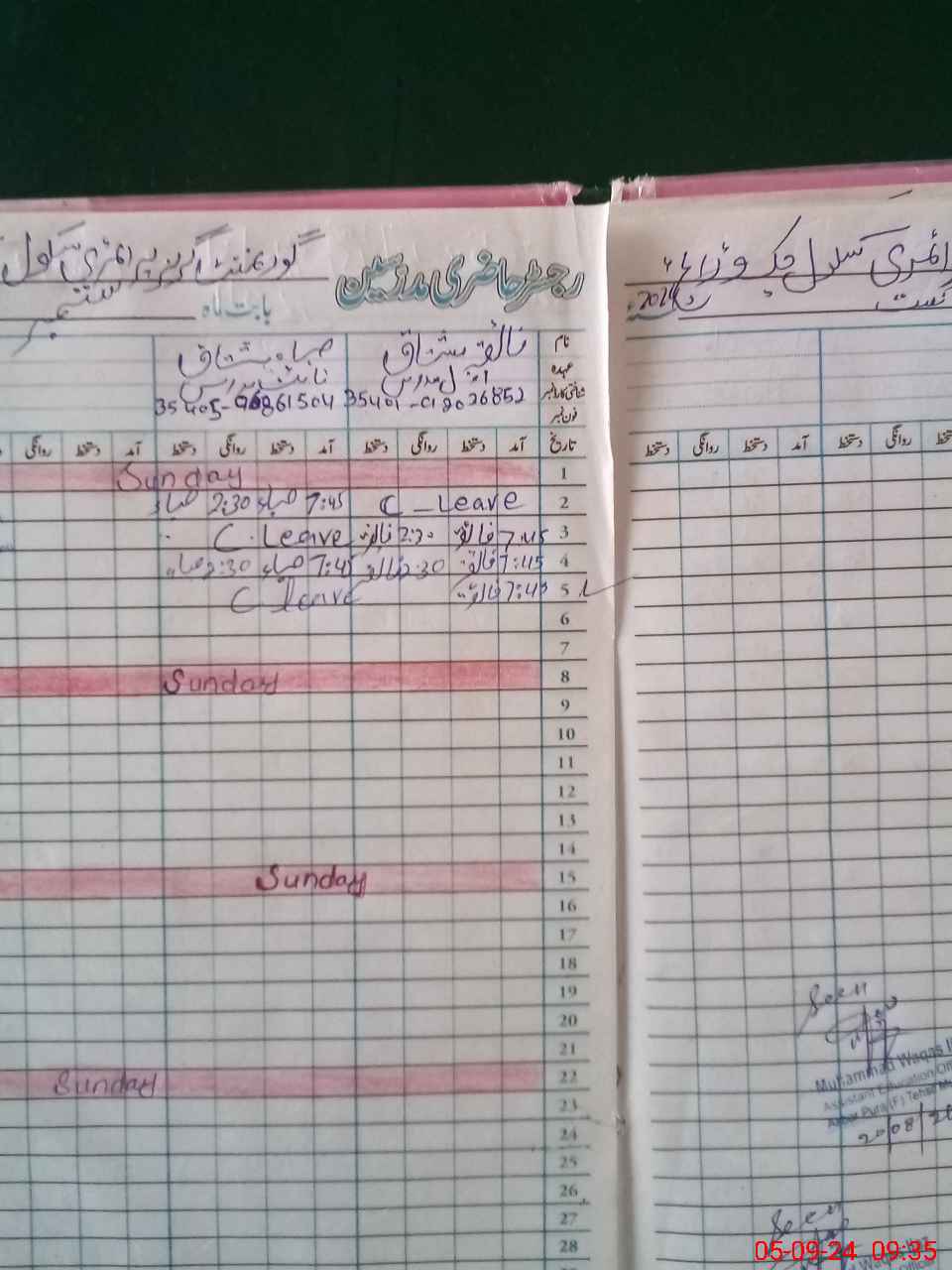 | Name: FA**** MU**** Designation: (School Headmaster's/Headmistress's) PST Phone/Cell Number: 03**** |