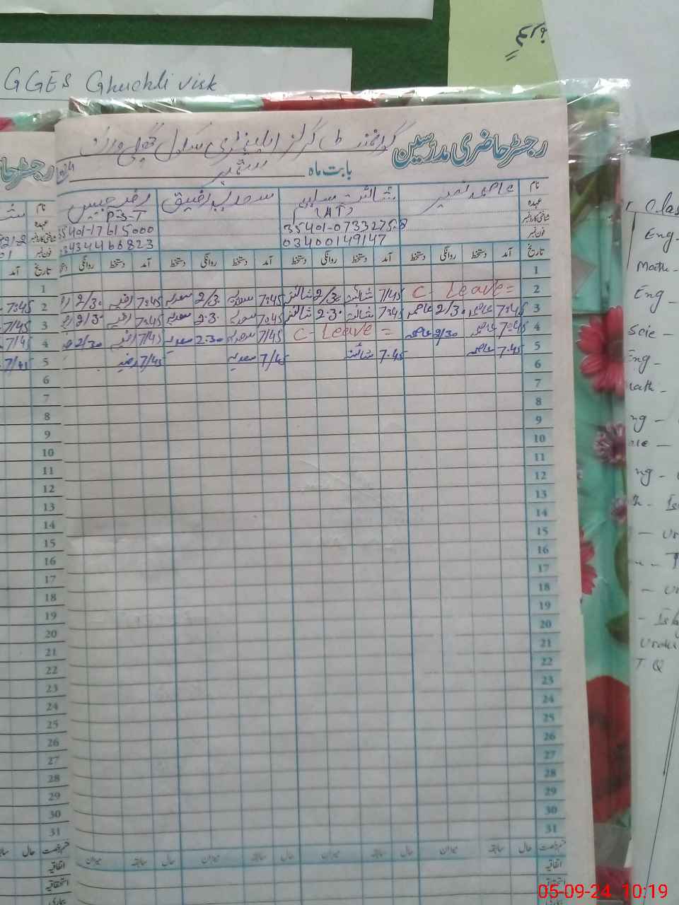 | Leave | Duty | Absent | Maternity | Medical | Ex- Pak |