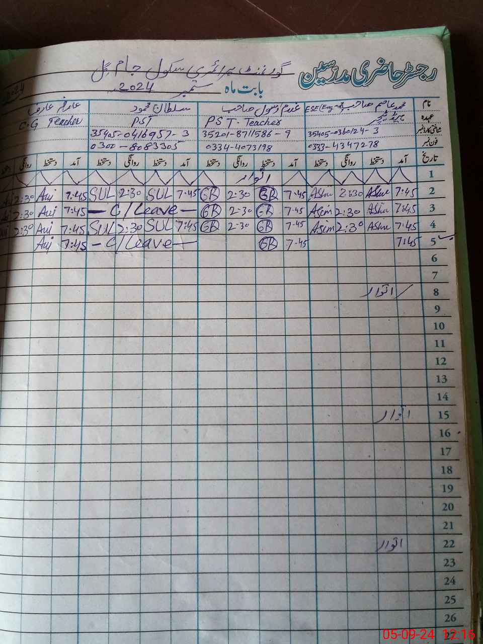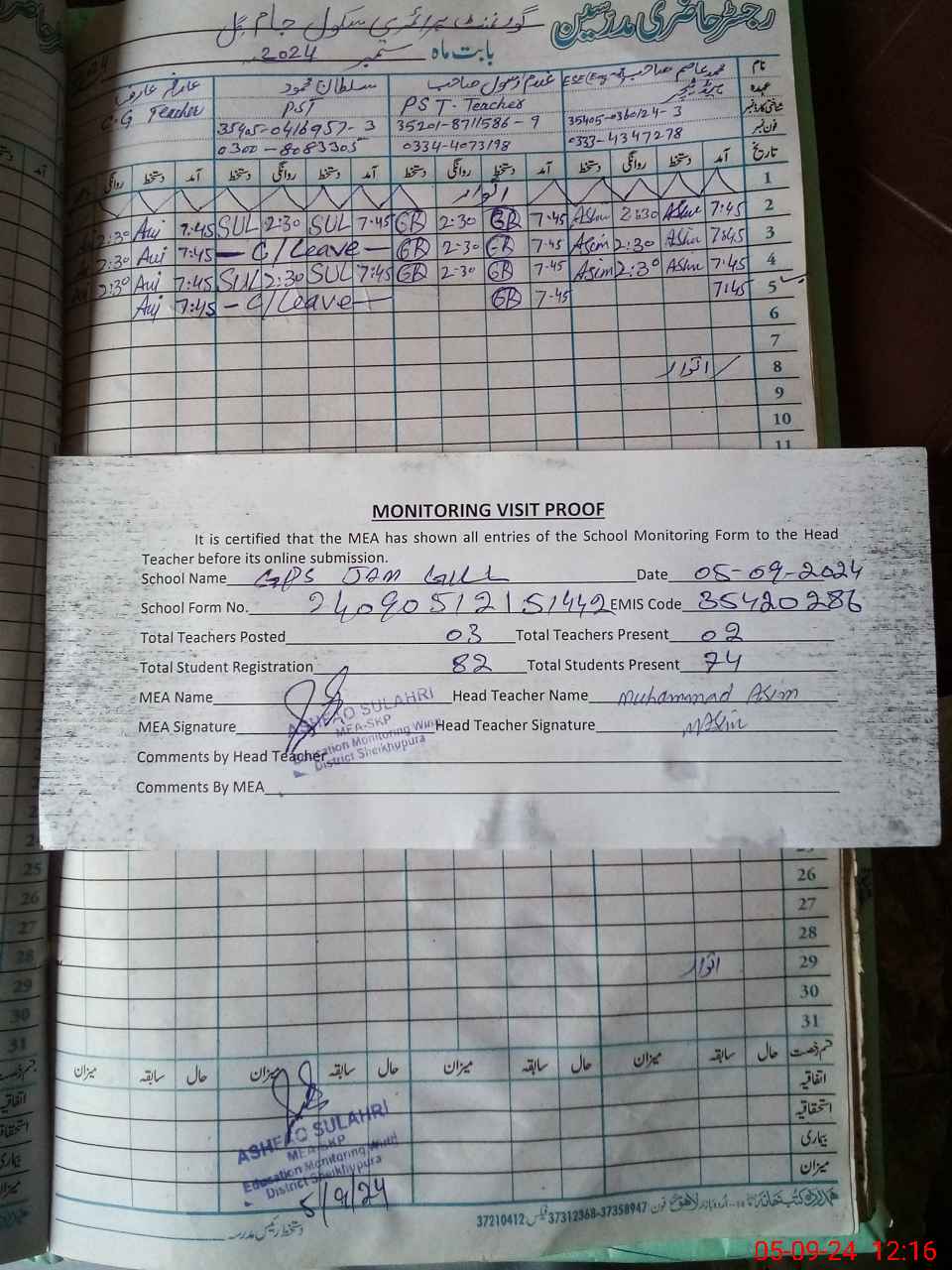 | Name: MU**** AS**** Designation: (School Headmaster's/Headmistress's) PST Phone/Cell Number: 03**** |