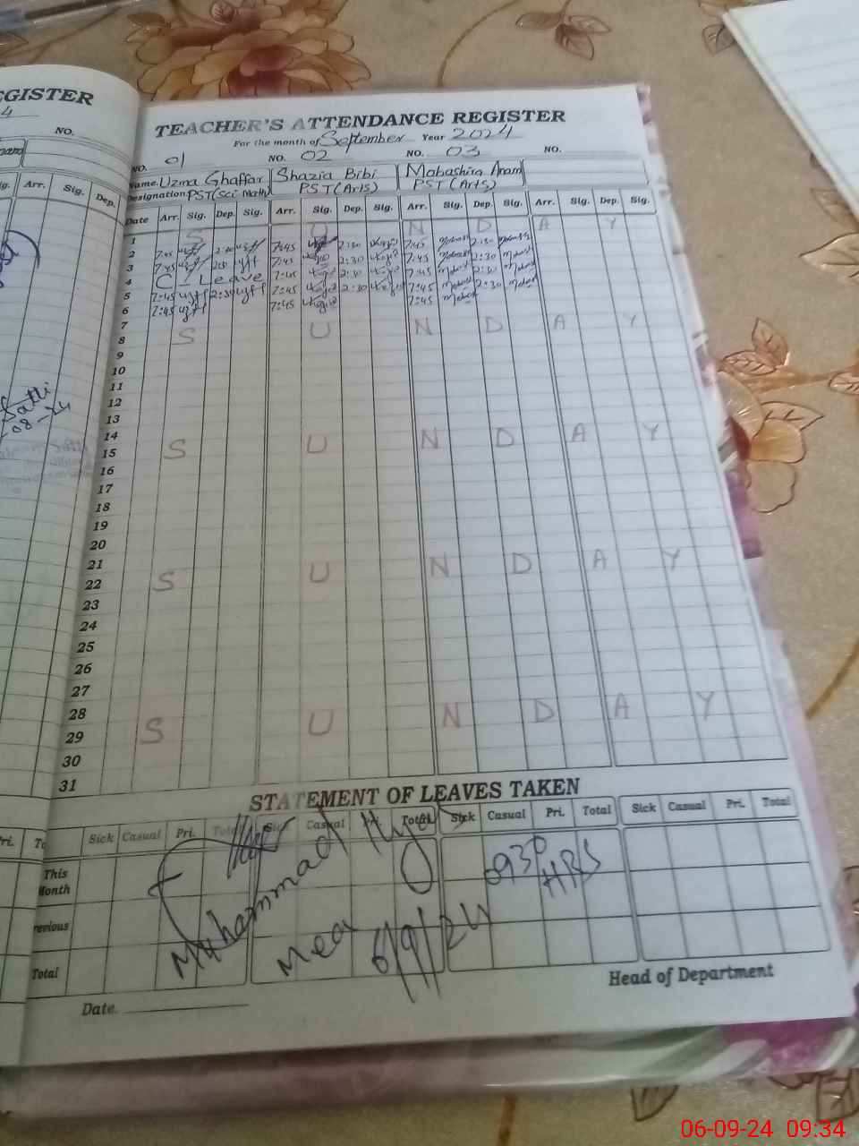 | Name: UZ**** GH**** Designation: (School Headmaster's/Headmistress's) ESE (SCI MATH) Phone/Cell Number: 03**** |