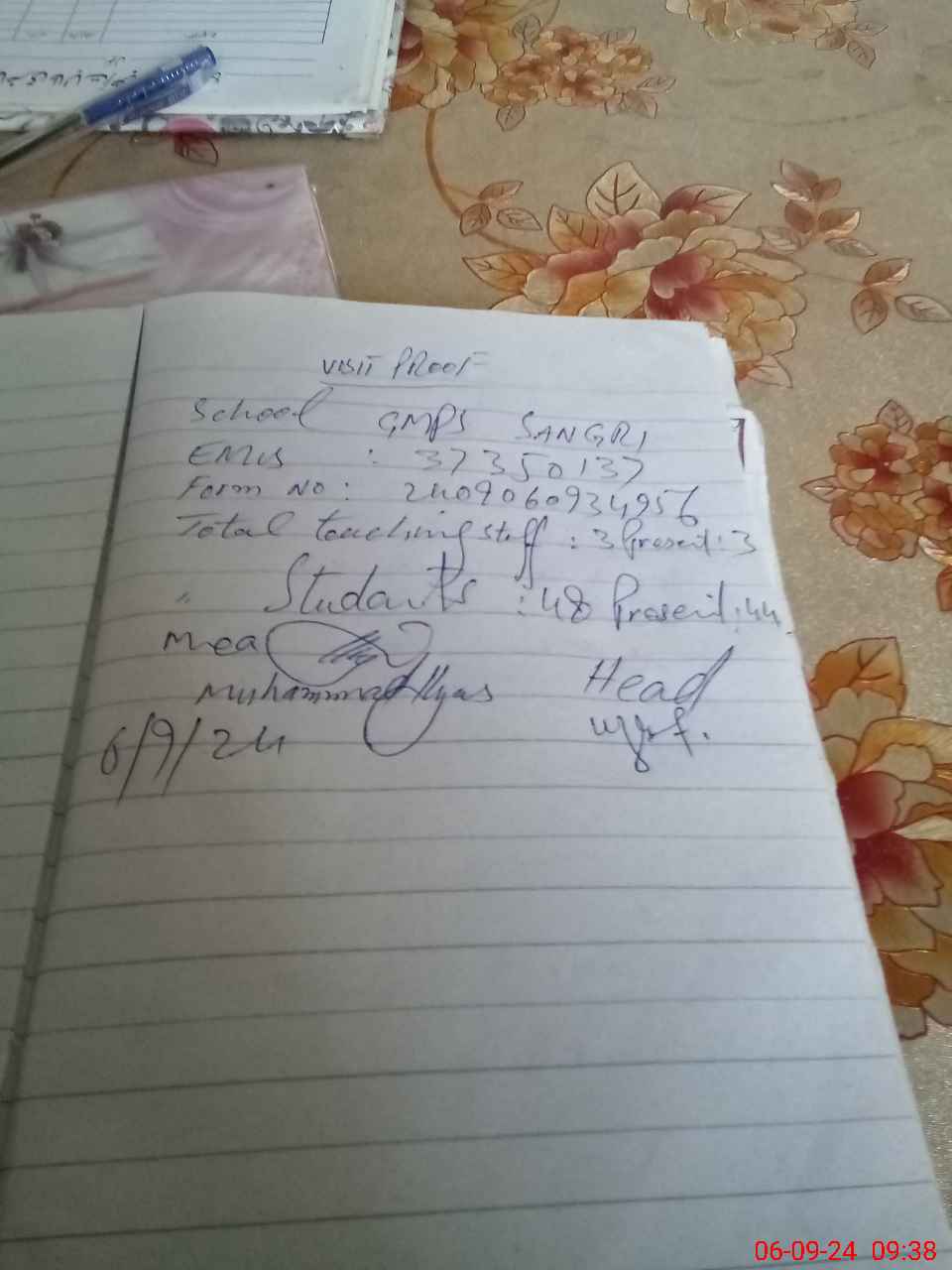 | Attendance Register | Head Teacher | MEA with School | Visit Proof |