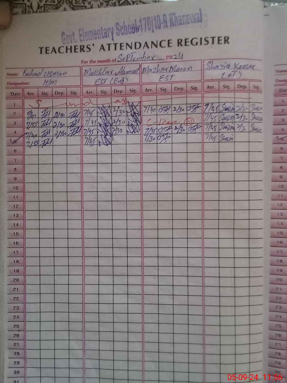| Name: Fa**** Us**** Designation: (School Headmaster's/Headmistress's) SST Phone/Cell Number: 03**** |